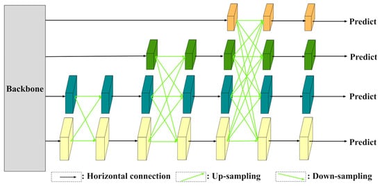 - Guo, C.; Fan, B.; Zhang, Q.; Xiang, S.; Pan, C. Augfpn: Improving multi-scale feature learning for object detection. In Proceedings of the IEEE/CVF Conference on Computer Vision and Pattern Recognition, Seattle, WA, USA, 14–19 June 2020; pp. 12595–12604. [Google Scholar]