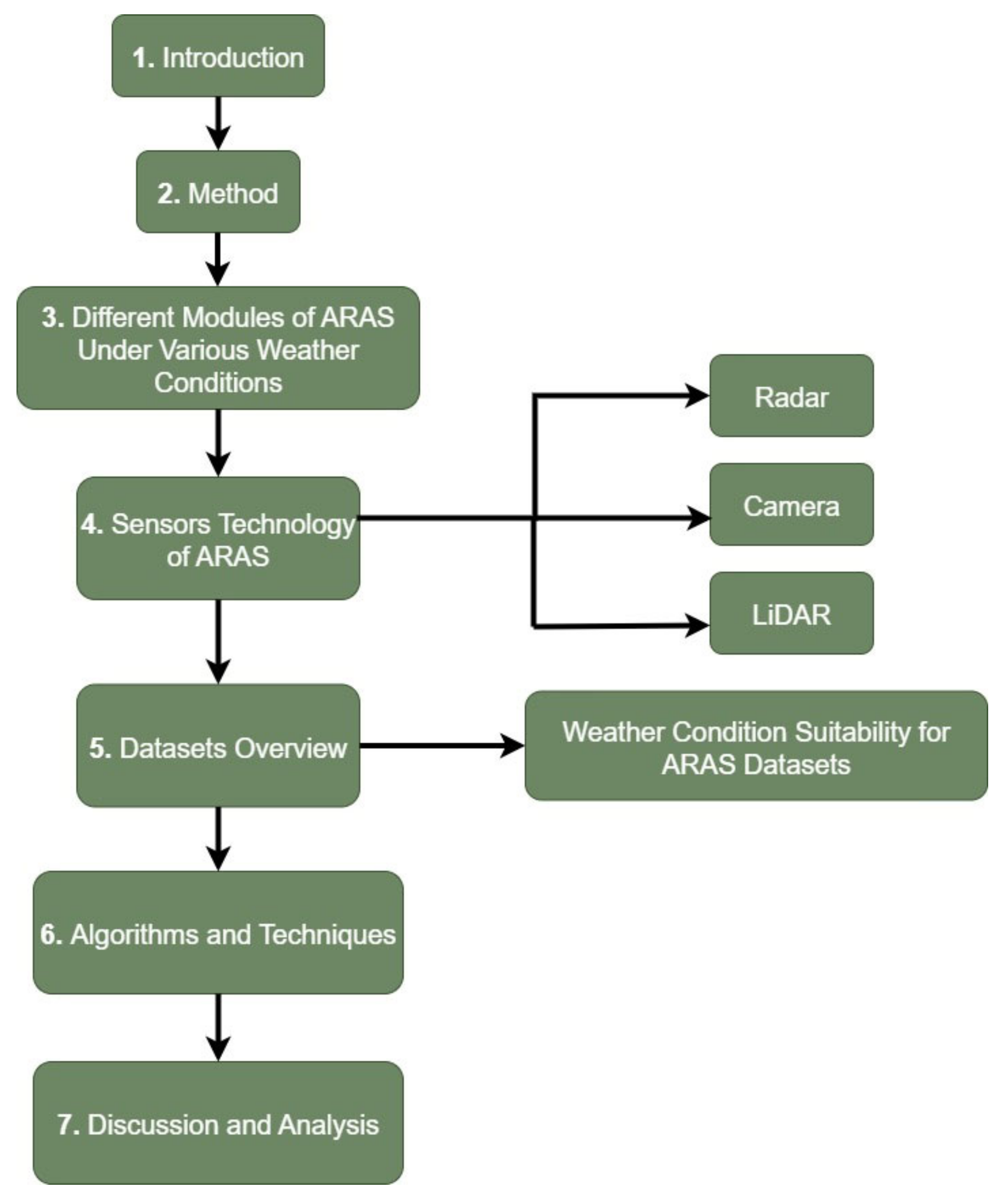 Section 3 discusses the different modules of ARAS under various weather conditions, where the main focus is on evaluating rainy, foggy, and snowy conditions for each module.