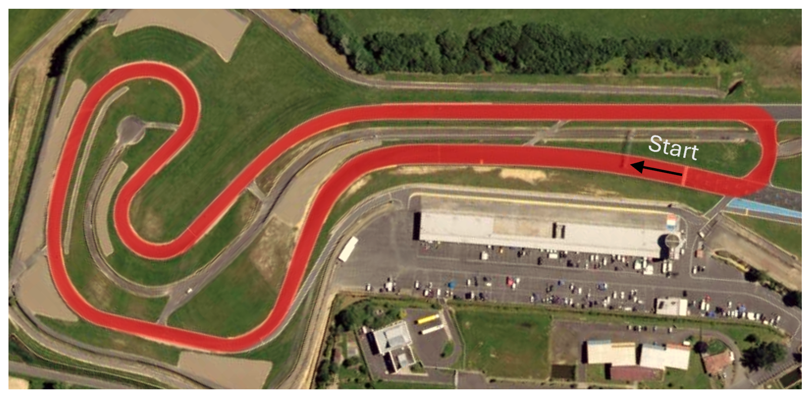 The 2024 Shell Eco-marathon competition took place at the Paul Armagnac racecourse near Nogaro, France. This track is relatively flat, with an elevation difference of approximately 5 m between its highest and lowest points, excluding the nearly 950-meter-long straight section. The Caupenne layout was used in the competition, which is 1535 m long and represents the shortest configuration of the racetrack, as shown in
