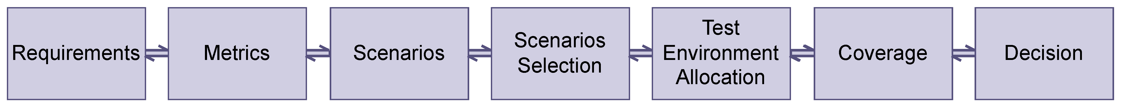 Figure 2, where requirements articulate the needs and decisions determine whether those needs are met. This yields a coherent workflow that supports consistent allocation, comparability of evidence across environments, and defensible claims about exercised scenarios and operational subspaces.