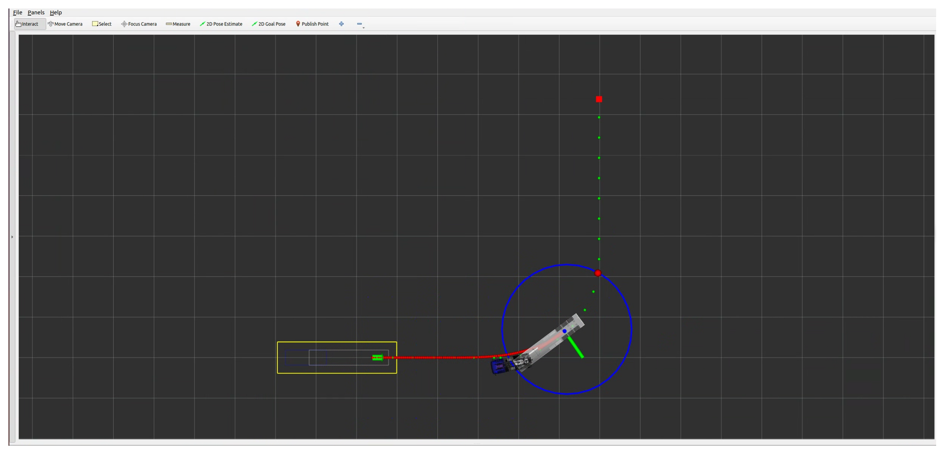 During each test execution, the truck was positioned in the staging area via manual control using a teleoperated joystick interfaced through WayWiseR, ensuring precise placement according to scenario specifications. Once positioned, the vehicle autonomously executed the reversing manoeuvre to the docking area following WayWiseR autopilot commands, while all sensor data, control signals, and state information were logged by WayWiseR Test Runner for subsequent validation. The ROS2 interface through WayWiseR also allowed remote monitoring of the test in real time through RViz, as shown in
