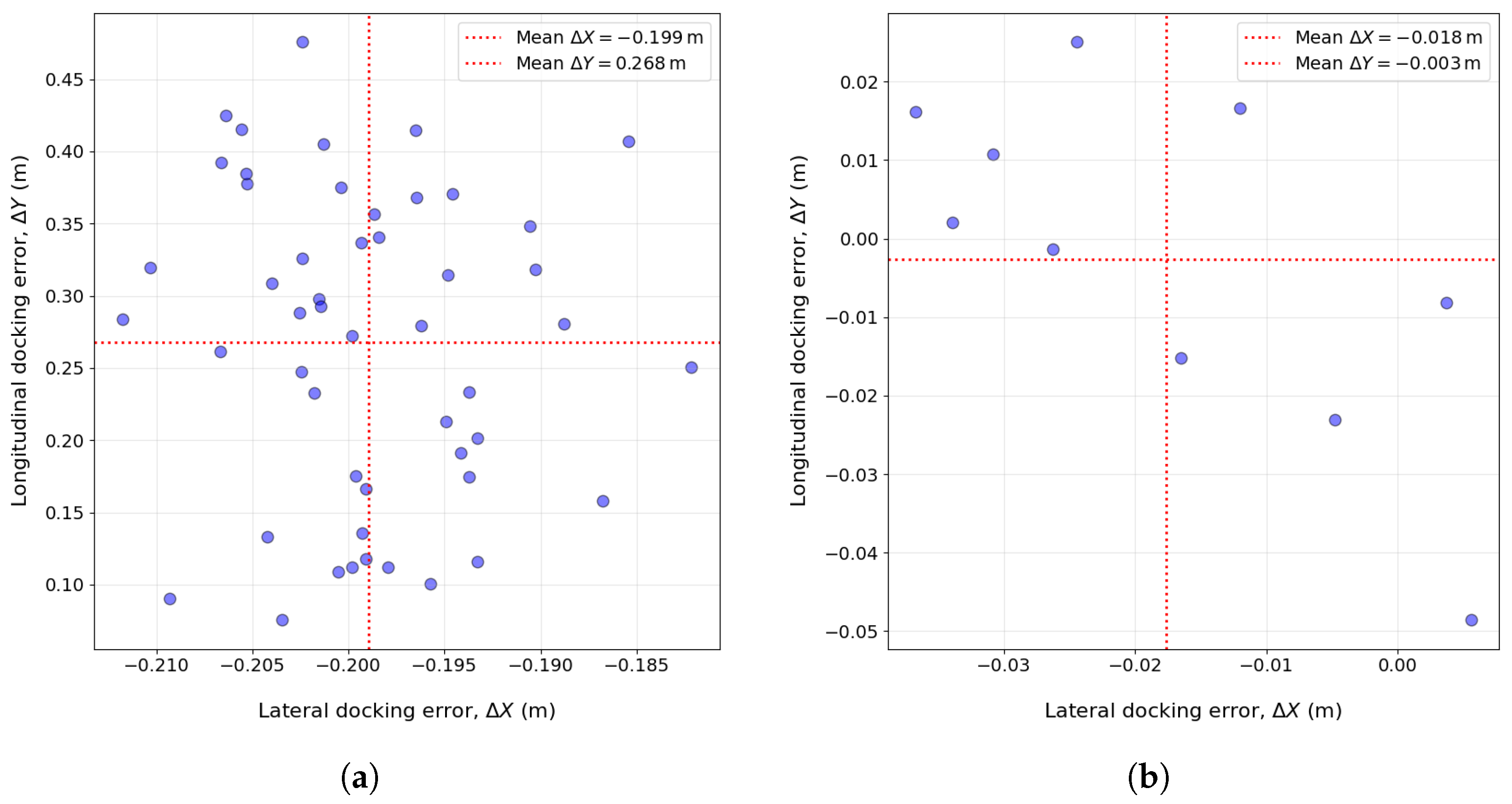 ), which may be attributed to the higher momentum of the full-scale vehicle and the correspondingly longer braking distance. This suggests that minor adjustments between the physical scaled prototype and the simulation models may be needed to reproduce longitudinal stopping characteristics better. Overall, the narrow ranges of both lateral and longitudinal errors indicate that the docking manoeuvrers are executed with high precision and consistency across repeated runs in both environments.