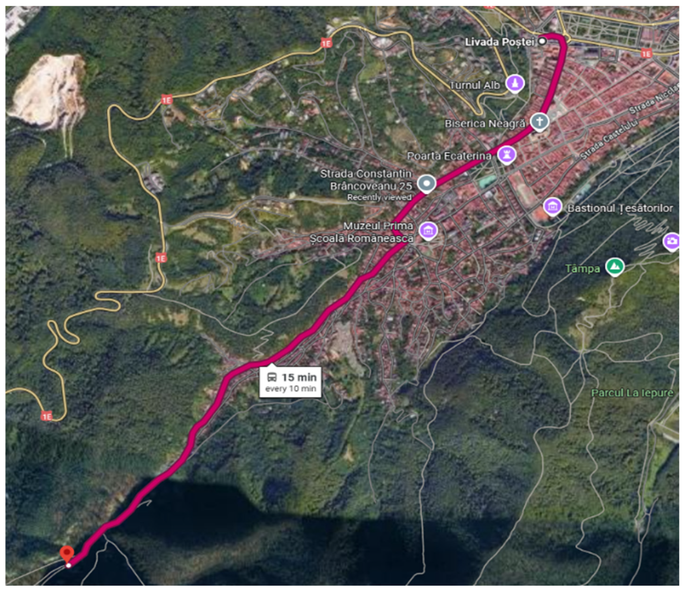 - Traffic Study for Municipality of Brasov. Available online: https://www.brasovcity.ro/file-zone/transport-public/studiu-trafic/Actualizare%20studiu%20de%20trafic%20Brasov_Livrabil4_v6_15.03.2021.pdf (accessed on 6 September 2025).