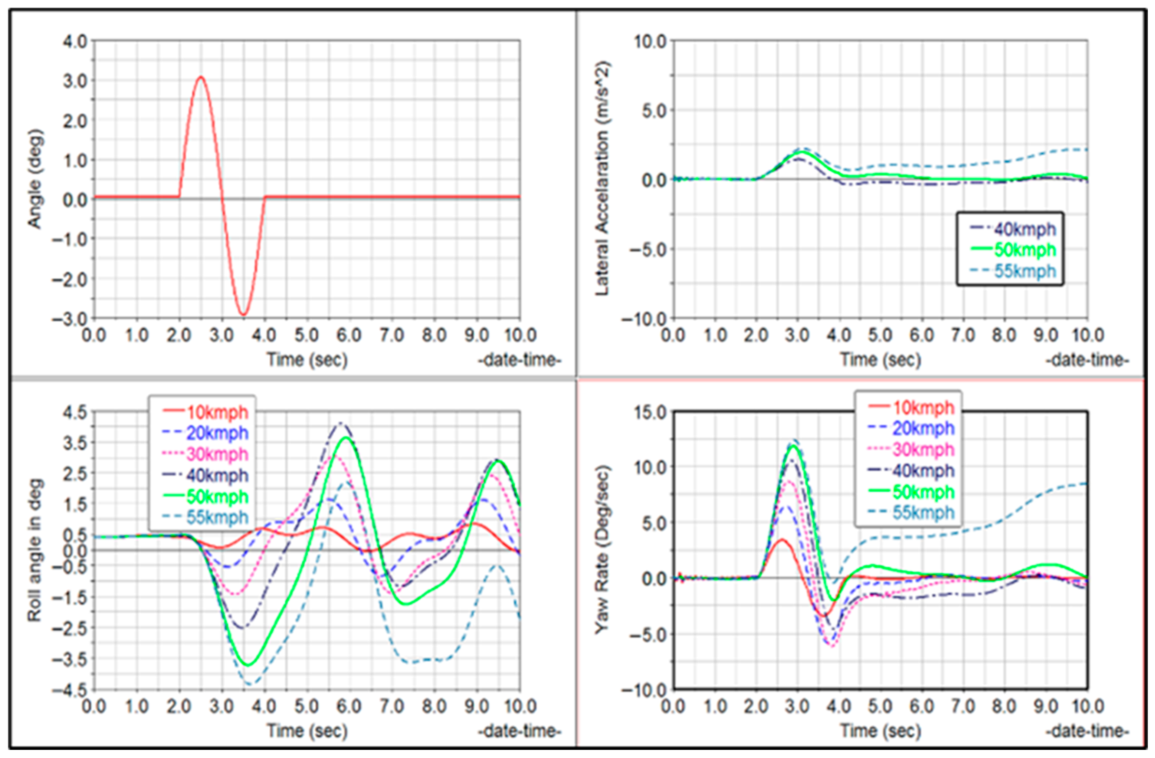 - Nguyen, X.N.; Tran, T.T. Rollover Stability Dynamic Analysis of Passenger Vehicle in Moving Conditions. Math. Model. Eng. Probl. 2023, 10, 16–21. [Google Scholar] [CrossRef]