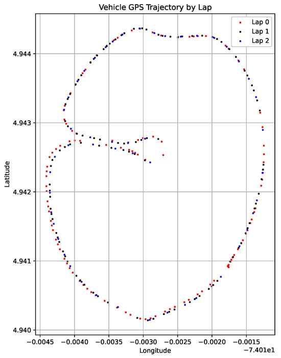 Positioning provided by the integrated GPS module yielded an average horizontal accuracy of approximately 3 m, which was adequate for robust lap segmentation and route-level trajectory assessment. This spatial granularity was found to be sufficient for speed estimation and lap timing across the race circuit.
