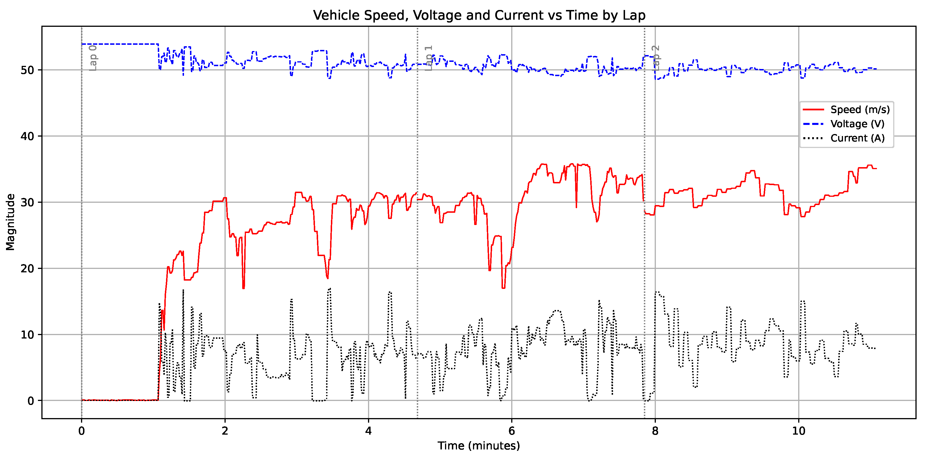 Figure 11). Minor variations in cornering lines and acceleration zones were correlated with localized changes in current draw and velocity (