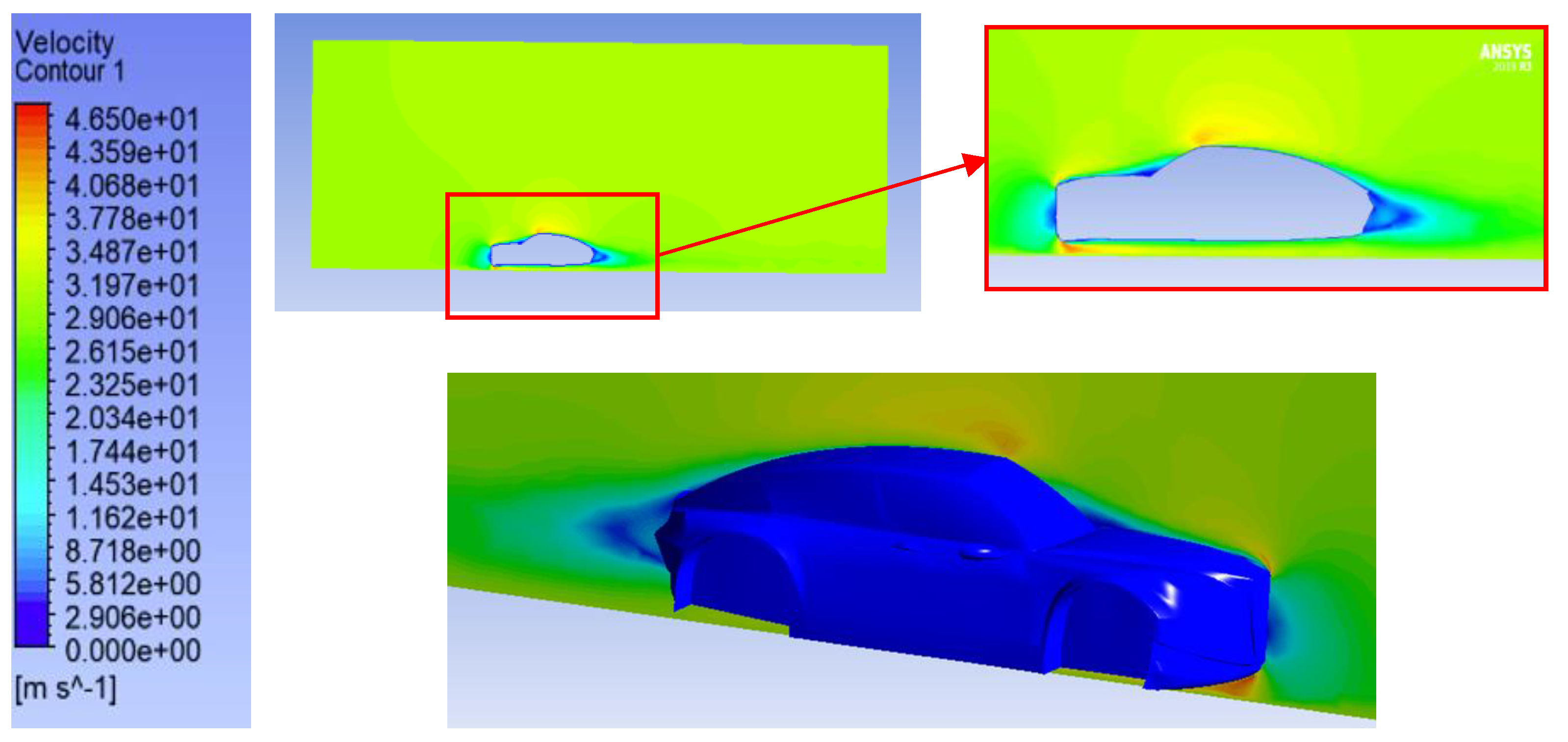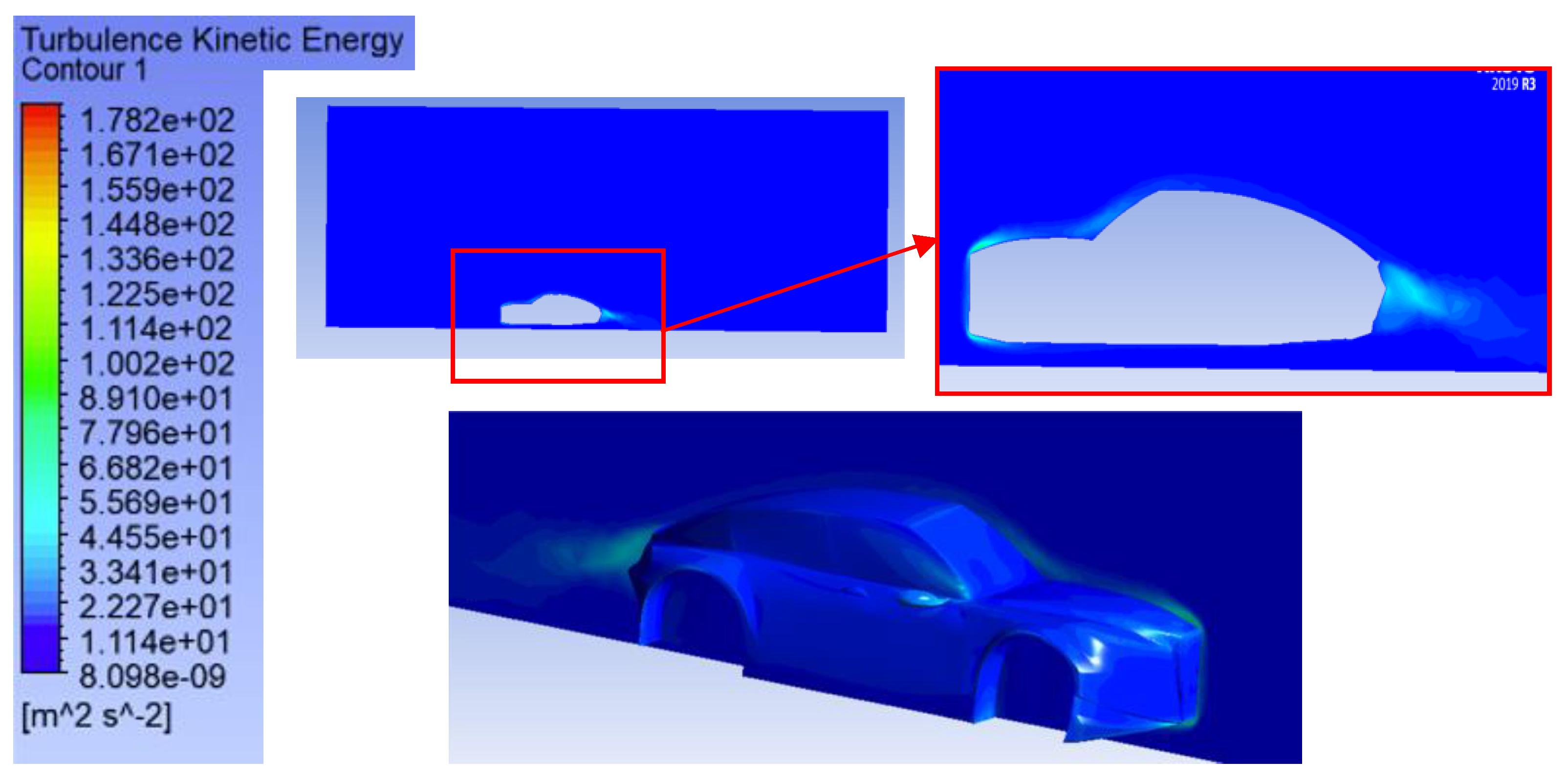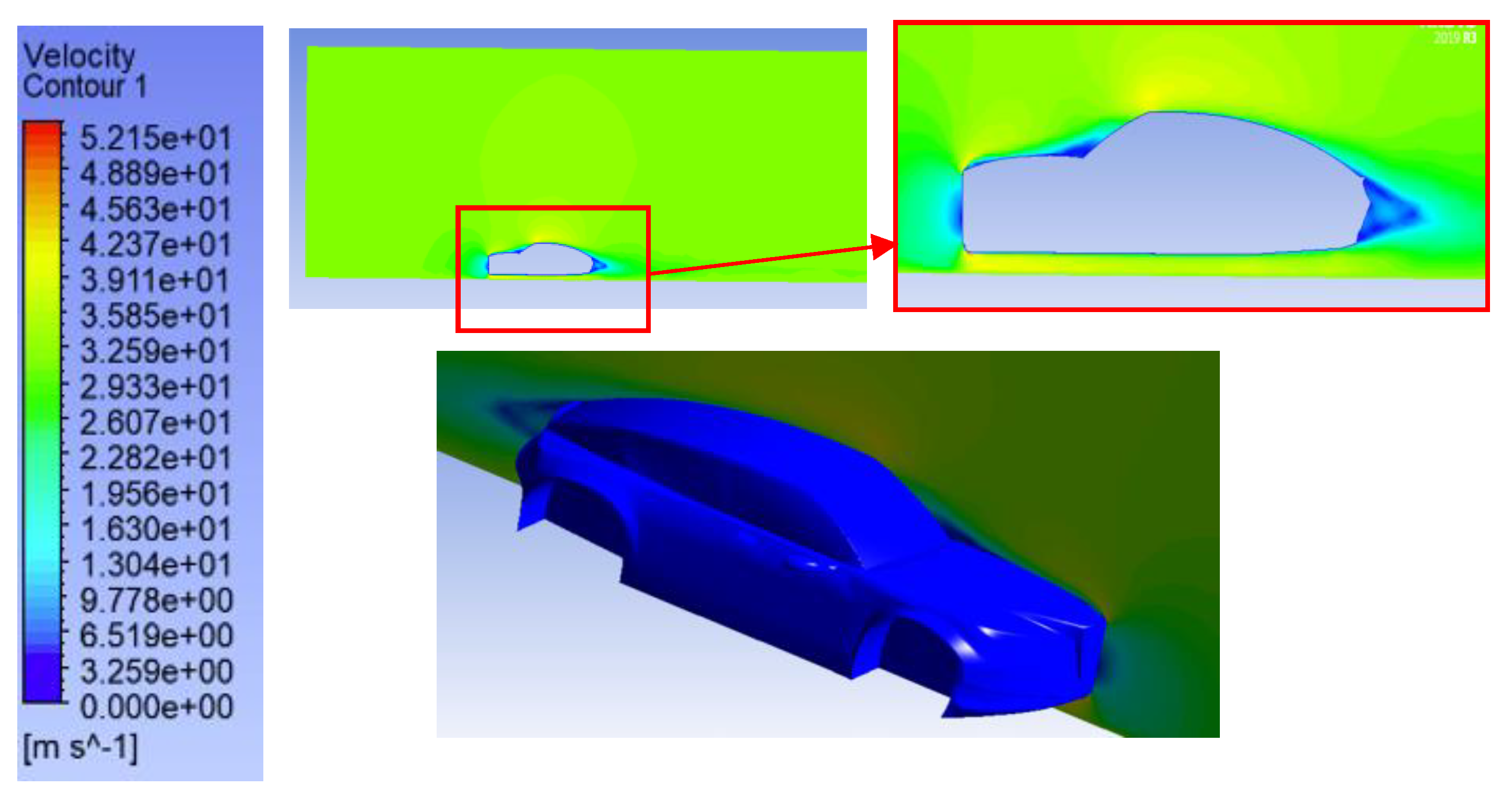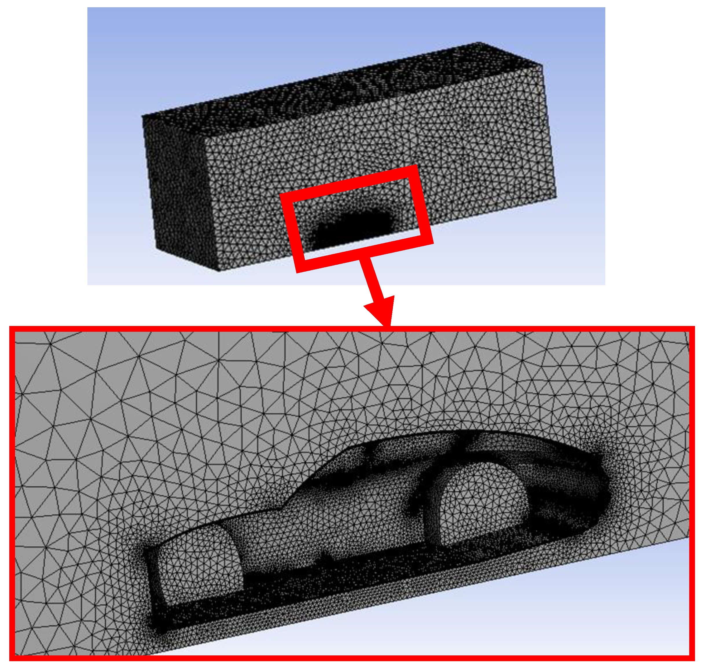 12] has shown that the specific CFD model to be used (in this case the type of mesh and turbulence model) affects the aerodynamic outcome to a great extent, and that a good trade-off of accuracy to computational cost is a hybrid RANS-LES model. Experiments in wind tunnels confirm that an appropriate mix of underbody diffusers, active systems, and front-end optimizations can dramatically decrease drag and increase stability [