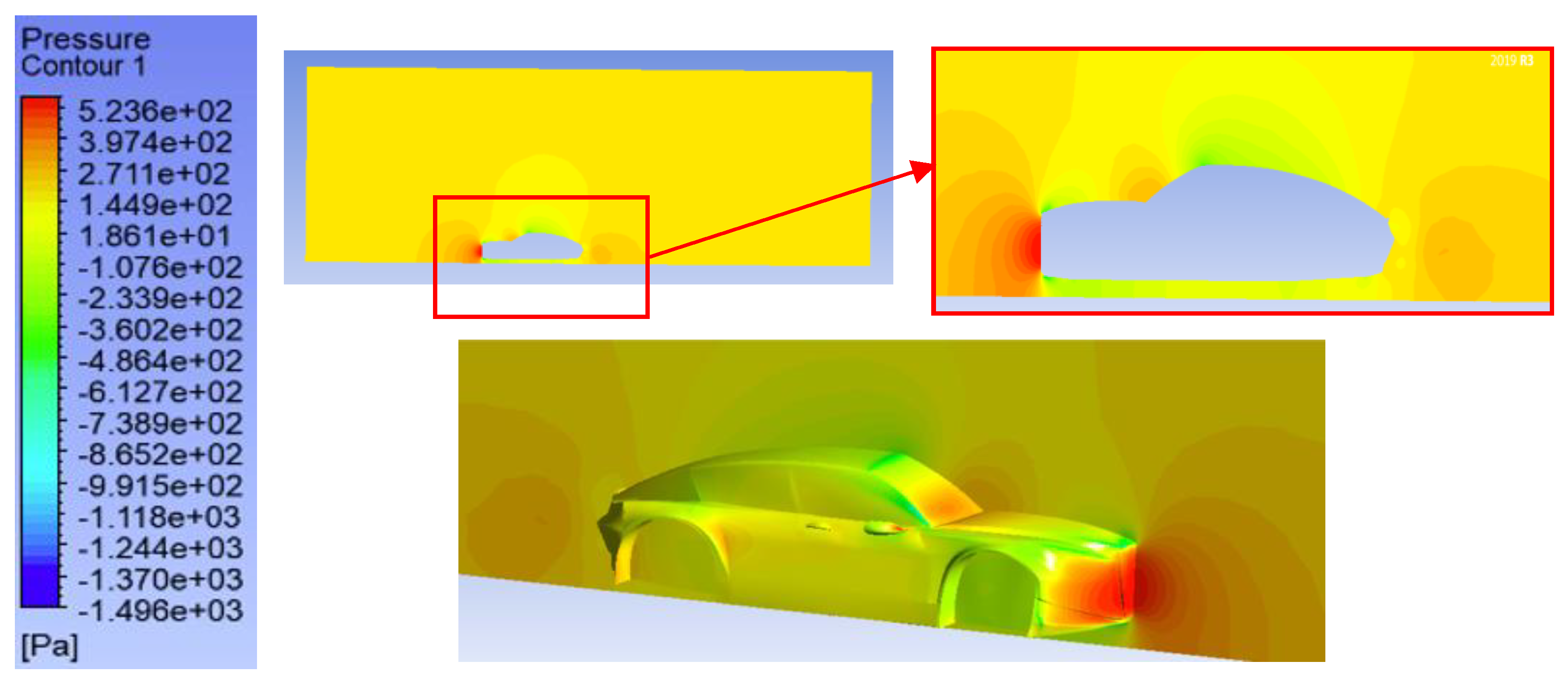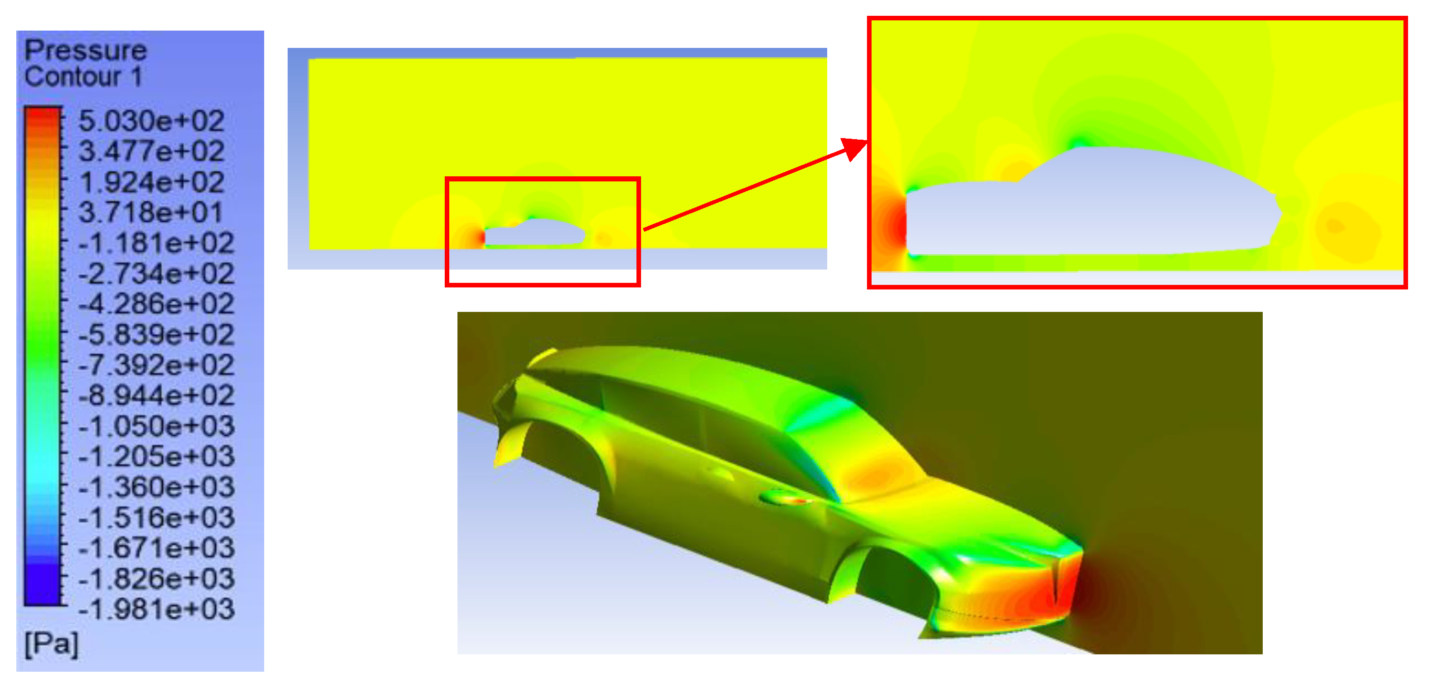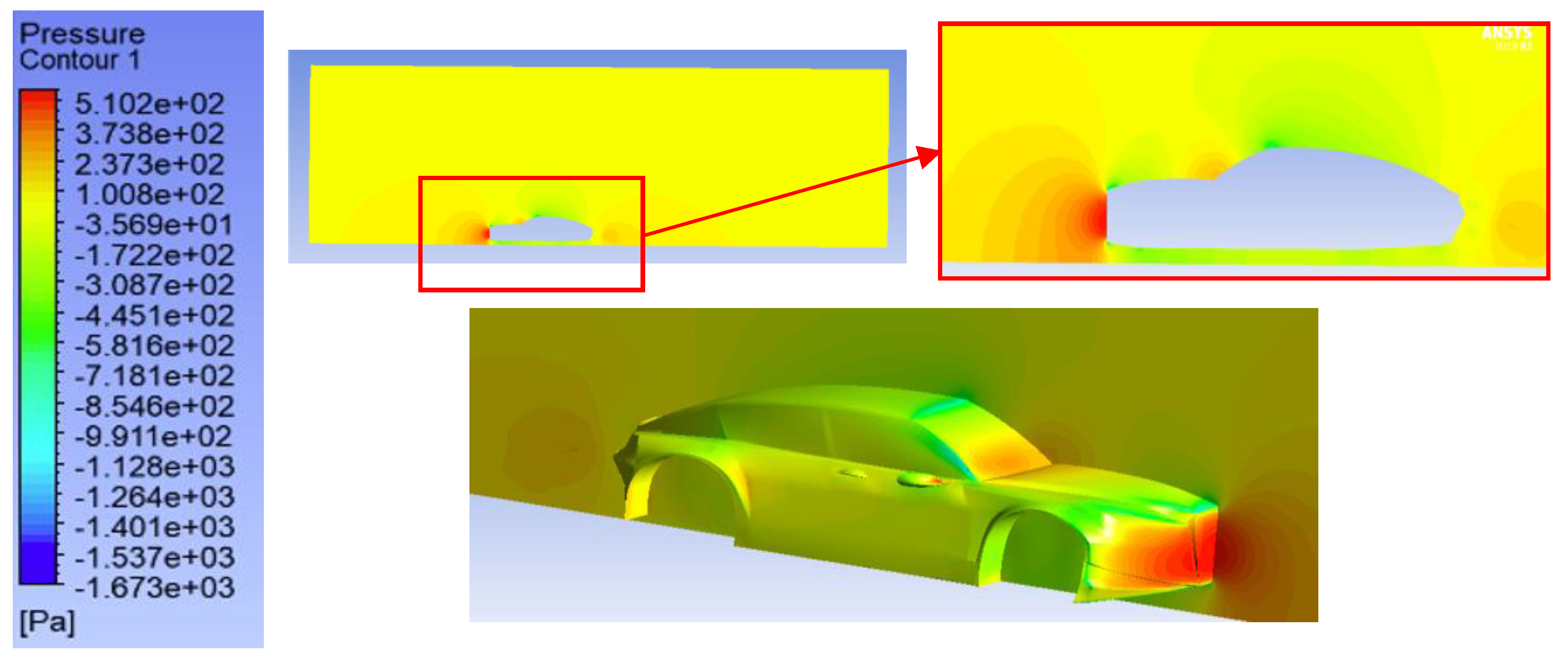 Here, the current work suggests an efficient and repeatable methodology comprising parametric geometrical modeling of the front bumper, fully automated CFD, response surface analysis (RSM), and multi-objective optimization by ANSYS DesignXplorer. Such a strategy successfully fills in the gap in research as it allows for the improvement of drag and lift ratios simultaneously, offers a framework that is directly applicable to the automotive industry, and suggests improving the general picture of the aerodynamic impact of the front-end geometry in electric vehicles.
