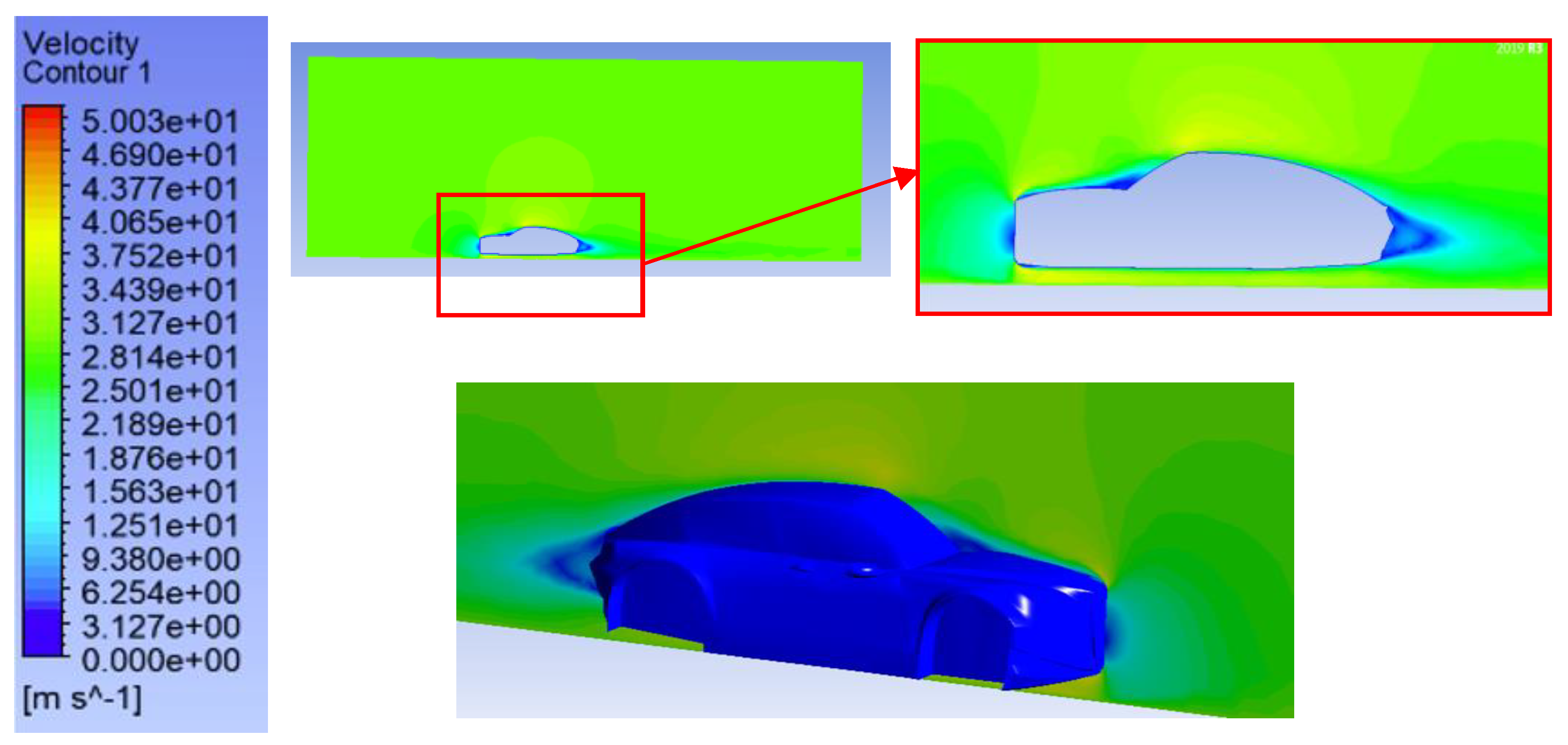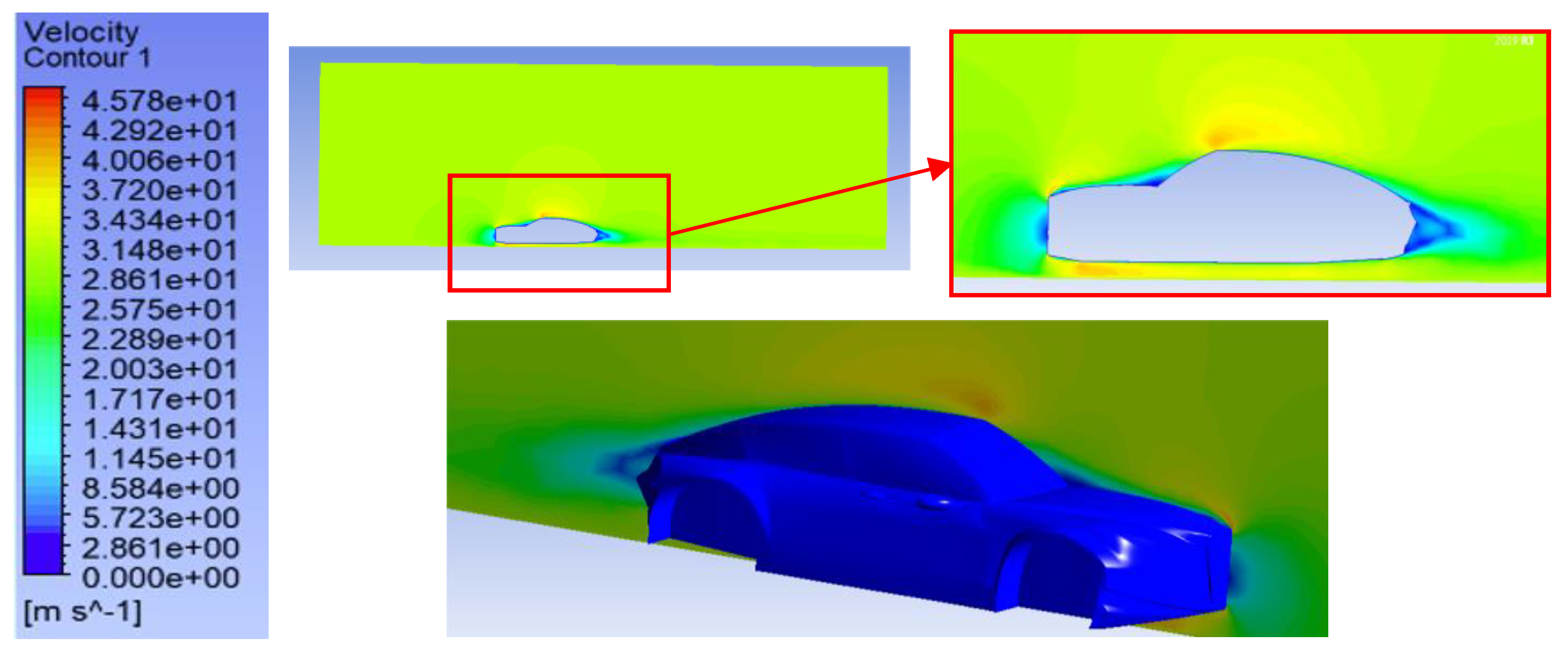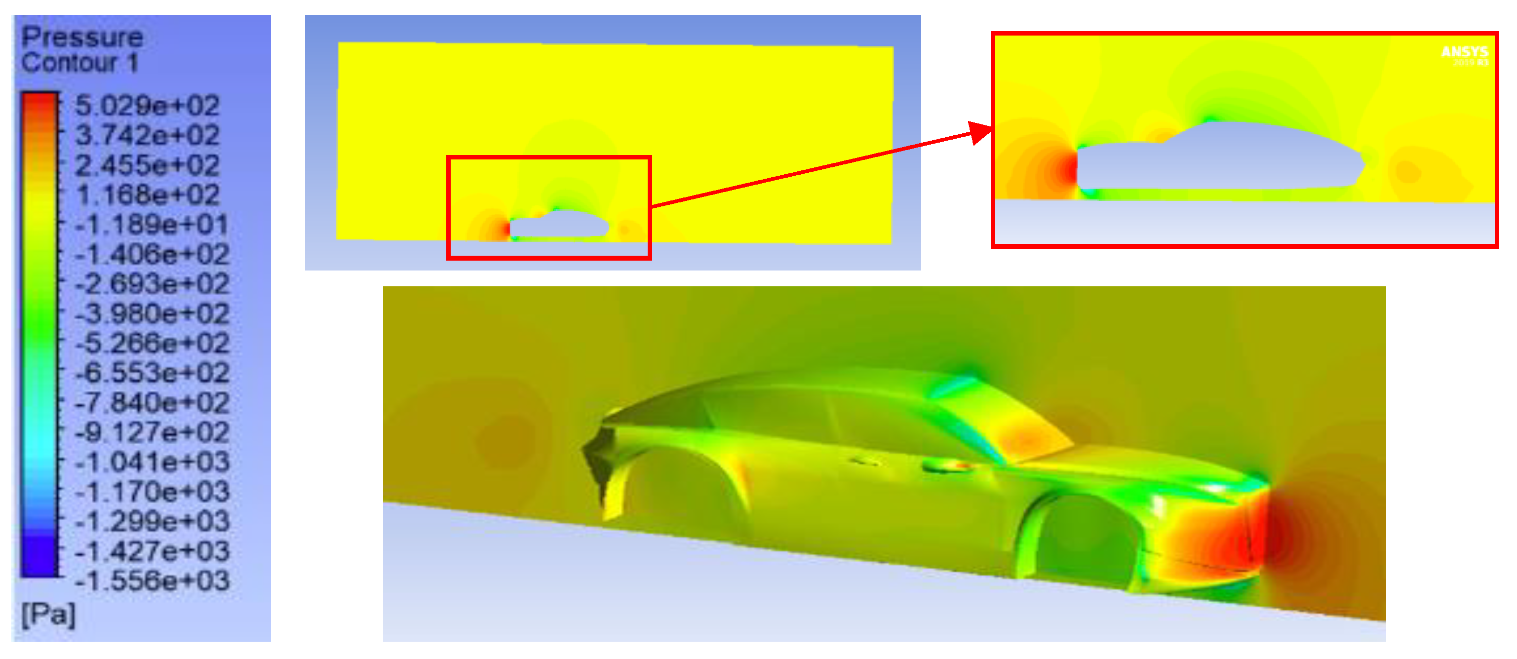 27] discovered that elevating front bumper incline angles together with modifying hood curvature diameters leads to decreases in drag coefficient values. Scientists have achieved significant improvements in the aerodynamics by optimizing the lateral design of the front bumper according to research [