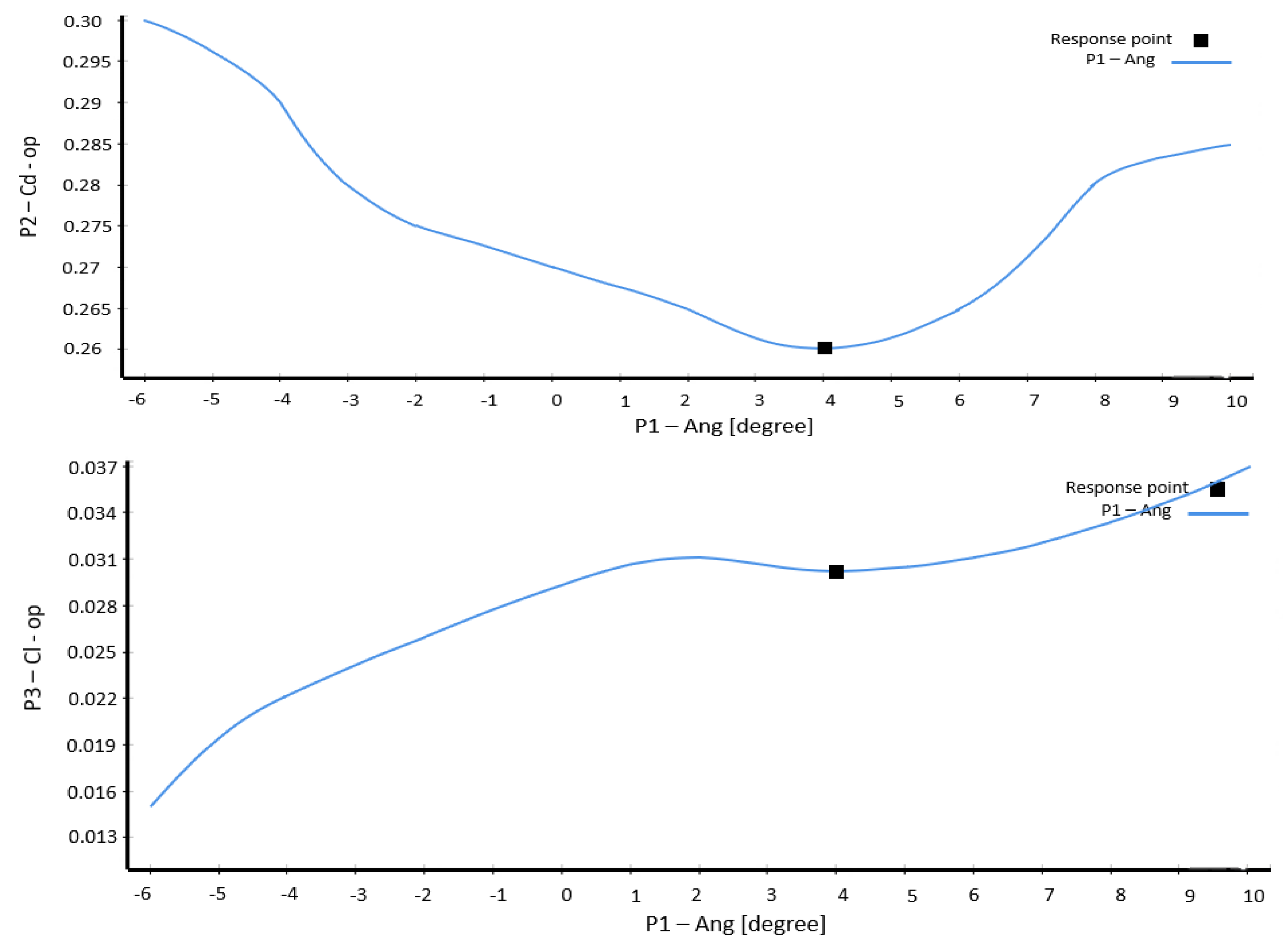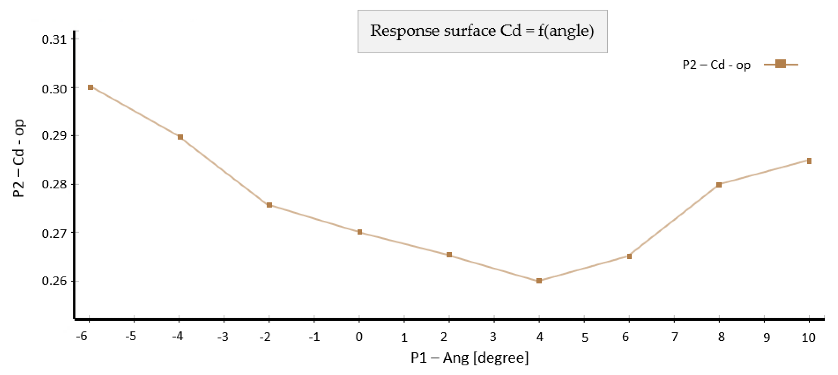 The quality of this statistical model was confirmed by residual analysis, local sensitivity, and global robustness diagnostics. The multi-objective optimization gave an optimal solution through 3.9998° at a drag coefficient of 0.2601 and a lift coefficient of 0.0302. This solution is also Pareto optimal; this proves that it is a trade-off non-dominated between the two objectives: drag and aerodynamic stability.