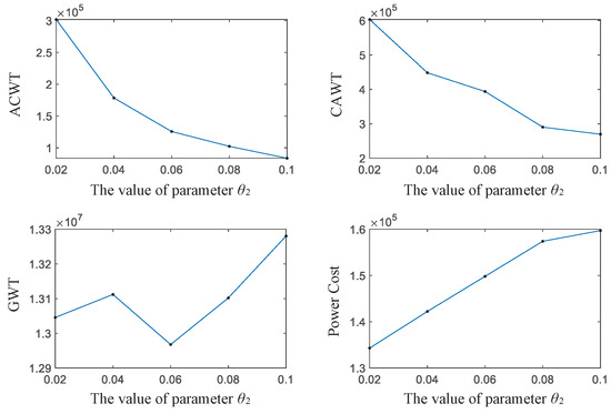 The first subplot of Figure 7 further reveals that both the NFLT and NSTT in the downward direction remain almost unchanged. This stability ensures that the waiting time for the airport-to-city passengers is less affected by the increase in the value of , as clearly depicted in the second subplot of Figure 7.
