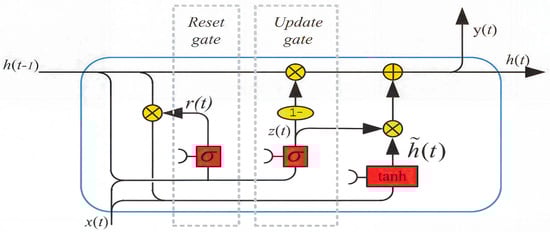 It can be observed that the GRU RNN Equations (16) and (17) are similar to the LSTM RNN (13) and (14), but with fewer external gating signals in the interpolation Equation (16). This reduction removes one gating signal and its associated parameters. Further details are provided in the original source and the references cited therein.