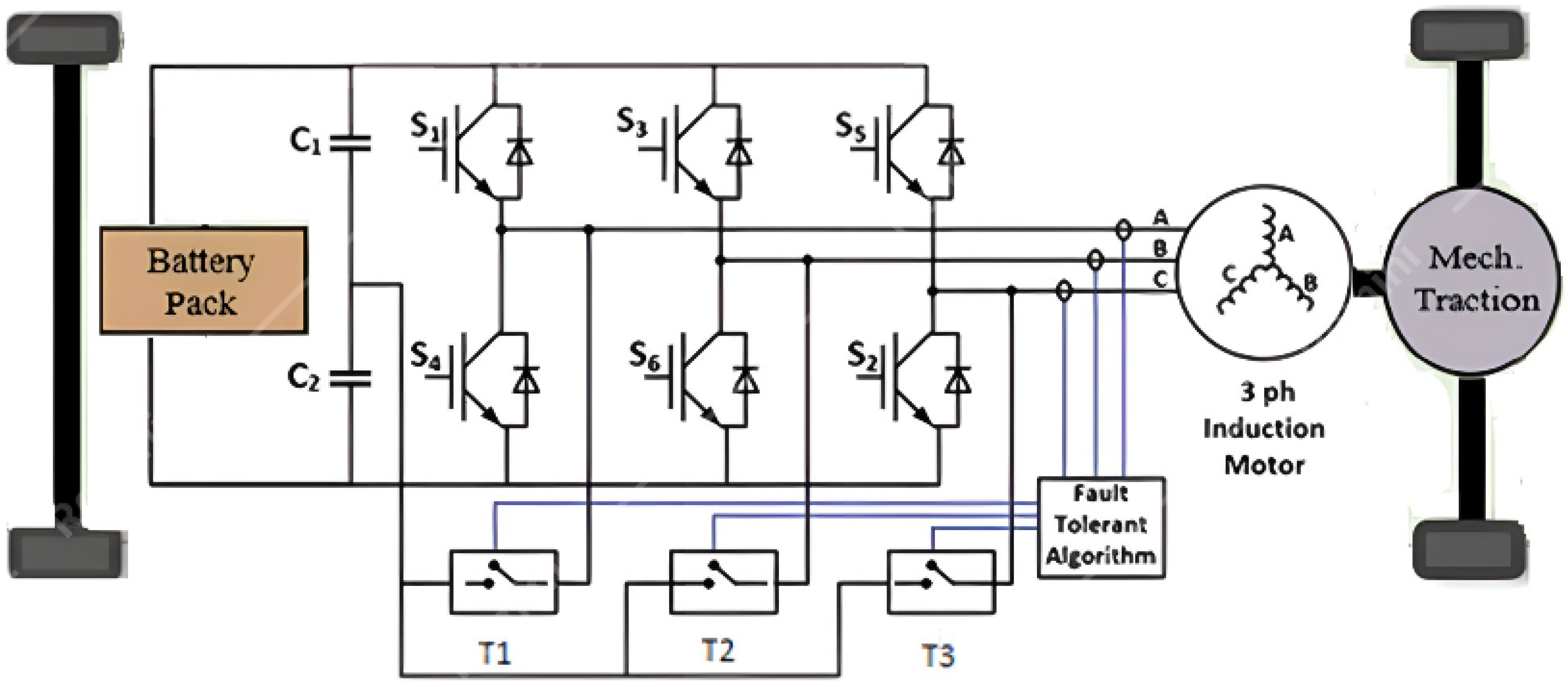 In practical EV applications, inverter switches can face different kinds of faults. These faults include open circuits, gate-driver problems, and partial failures in one inverter leg. Such issues can suddenly stop the operation of drive systems, which not only affects vehicle safety but also reduces the usage of EVs [