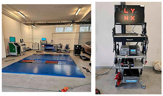 The performance parameters were measured on a chassis dynamometer manufactured by the MAHA (Haldenwang, Germany), model MSR 500/3 4WD, in combination with the MCD 2000 communication console, which enables the testing of vehicles with 4 × 4 drive. The relevant device can be seen in Figure 1. The accuracy and uncertainty of the device are given in Table 4.