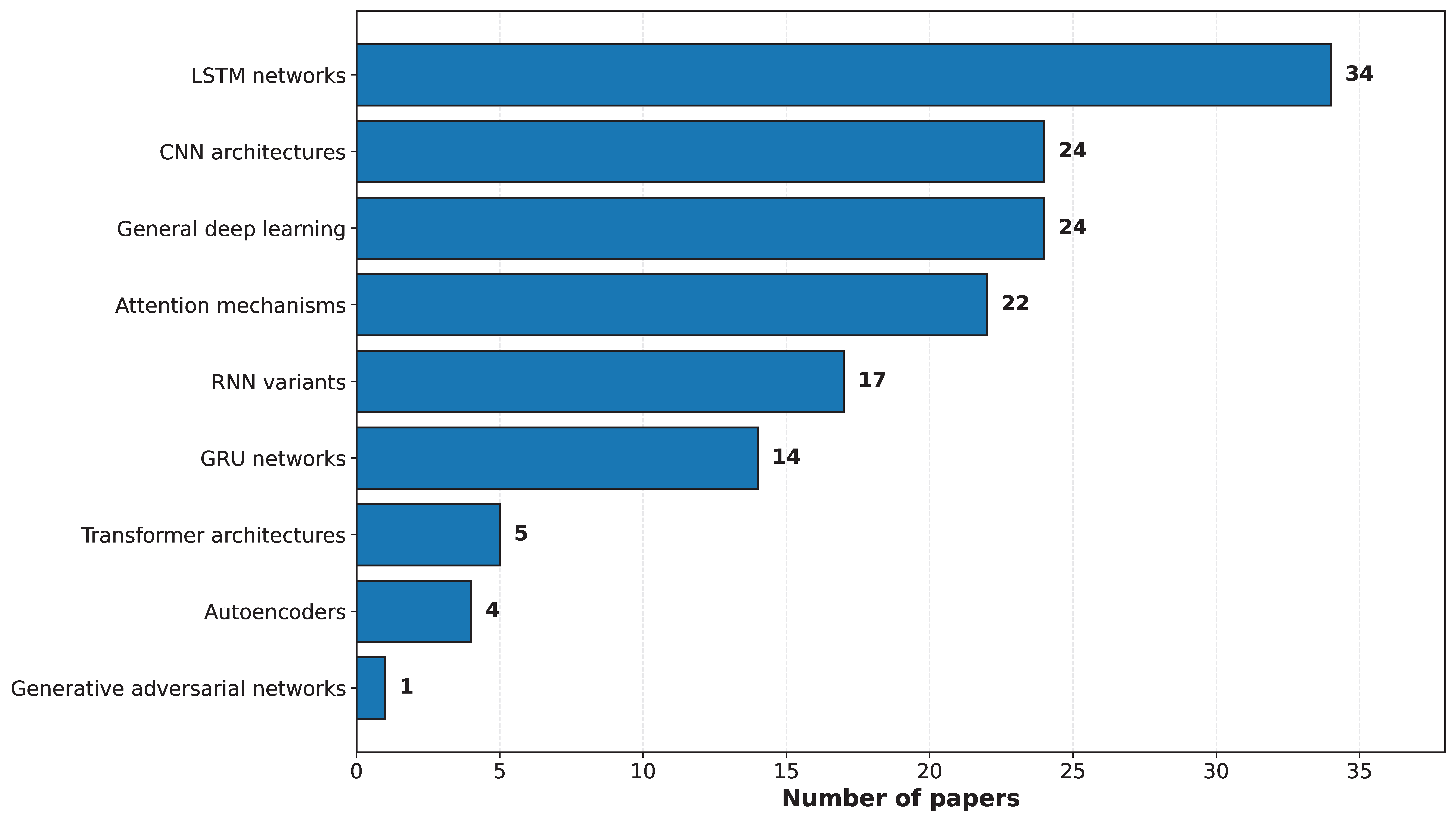 Search Strategy Rationale: Our search strategy incorporated terms related to large language models (LLMs), specifically “LLM OR large language model OR transformer,” which may theoretically omit certain studies predating 2020 that do not reference these terms. Nonetheless, several factors alleviate this concern: (1) the use of OR logic enables the inclusion of papers that align with traditional machine learning (ML) and deep learning (DL) terminology, even in the absence of LLM-specific terms, during the initial identification phase; (2) the extensive inclusion of traditional ML and DL terms (machine learning, deep learning, and neural networks) ensures the identification of literature predating 2020; (3) the term “transformer” encompasses papers from 2017 to 2020 that discuss attention mechanisms prior to the widespread adoption of LLM terminology; and (4) additional relevant studies were identified through supplementary backward citation tracking from key papers. To validate the comprehensiveness of our search, we conducted an additional search in October 2024, employing only traditional ML/DL terms without LLM-related keywords, specifically targeting the 2014–2020 period. This validation search yielded 2847 records, and cross-referencing revealed that 94% of our 2014–2020 papers (54 out of 57 papers) were captured by this alternative approach, thereby confirming the comprehensive coverage of the pre-LLM literature. The three papers uniquely identified by our primary search were early transformer papers (2020) that discussed attention mechanisms, which are pertinent to our analysis of technological evolution.
