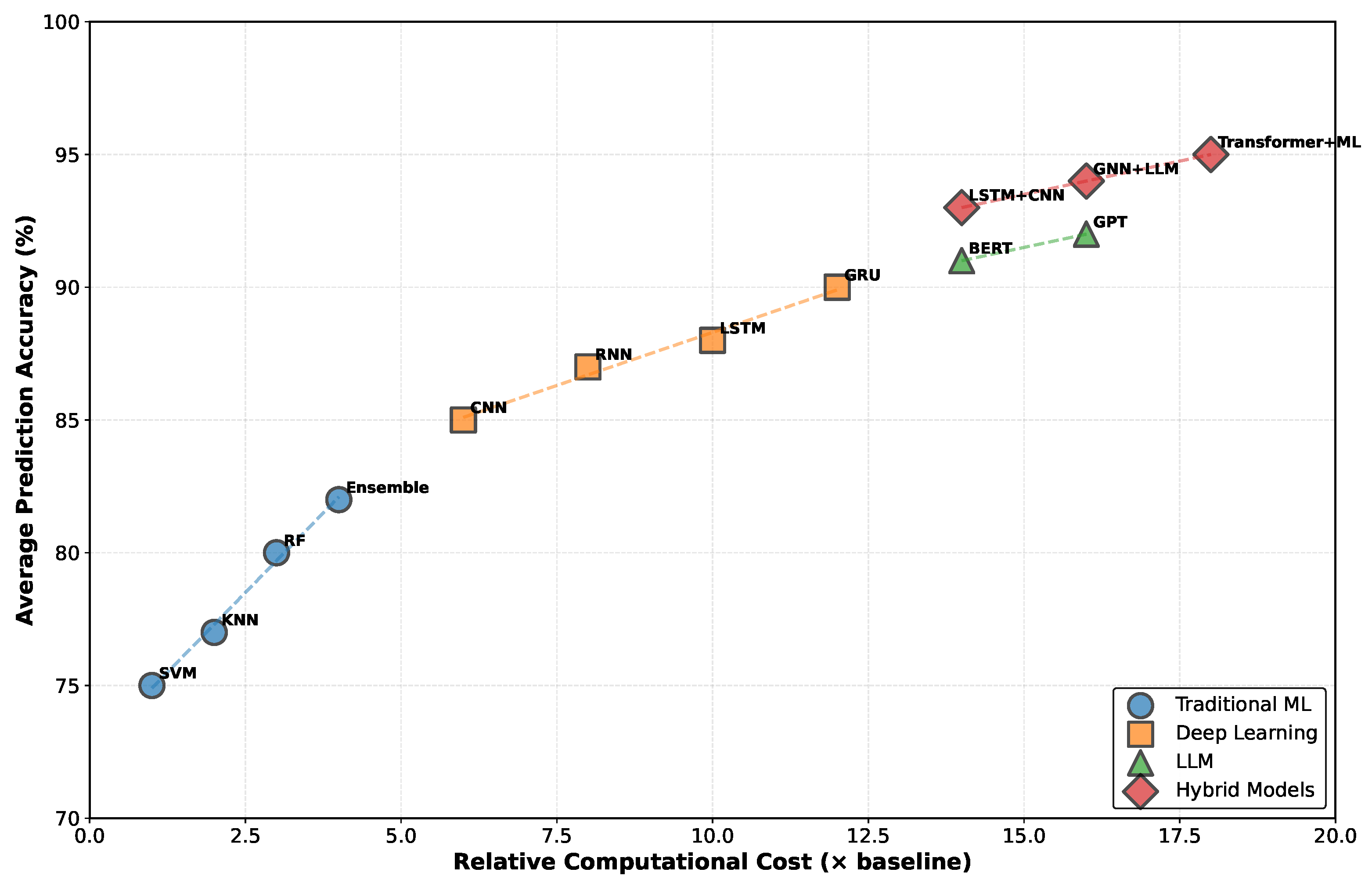 Empirical evidence suggests that hybrid methodologies, which integrate large language models (LLMs) with specialized deep learning architectures, achieve superior performance, with accuracy rates ranging from 92% to 96%. These approaches also offer practical flexibility in deployment, combining the efficiency of traditional methods with the contextual capabilities of large LLMs. Nonetheless, the trade-offs between performance and cost remain significant: while LLM-based systems yield an accuracy improvement of 10% to 15%, they necessitate considerably greater computational resources than traditional systems. Deep learning approaches occupy an intermediate position at 10–25× the traditional ML costs, offering an advantageous balance between accuracy improvements and resource requirements. The feasibility of LLM deployment is highly contingent on specific application contexts, with real-time highway management favoring lightweight models and strategic urban planning accommodating more sophisticated architectures.