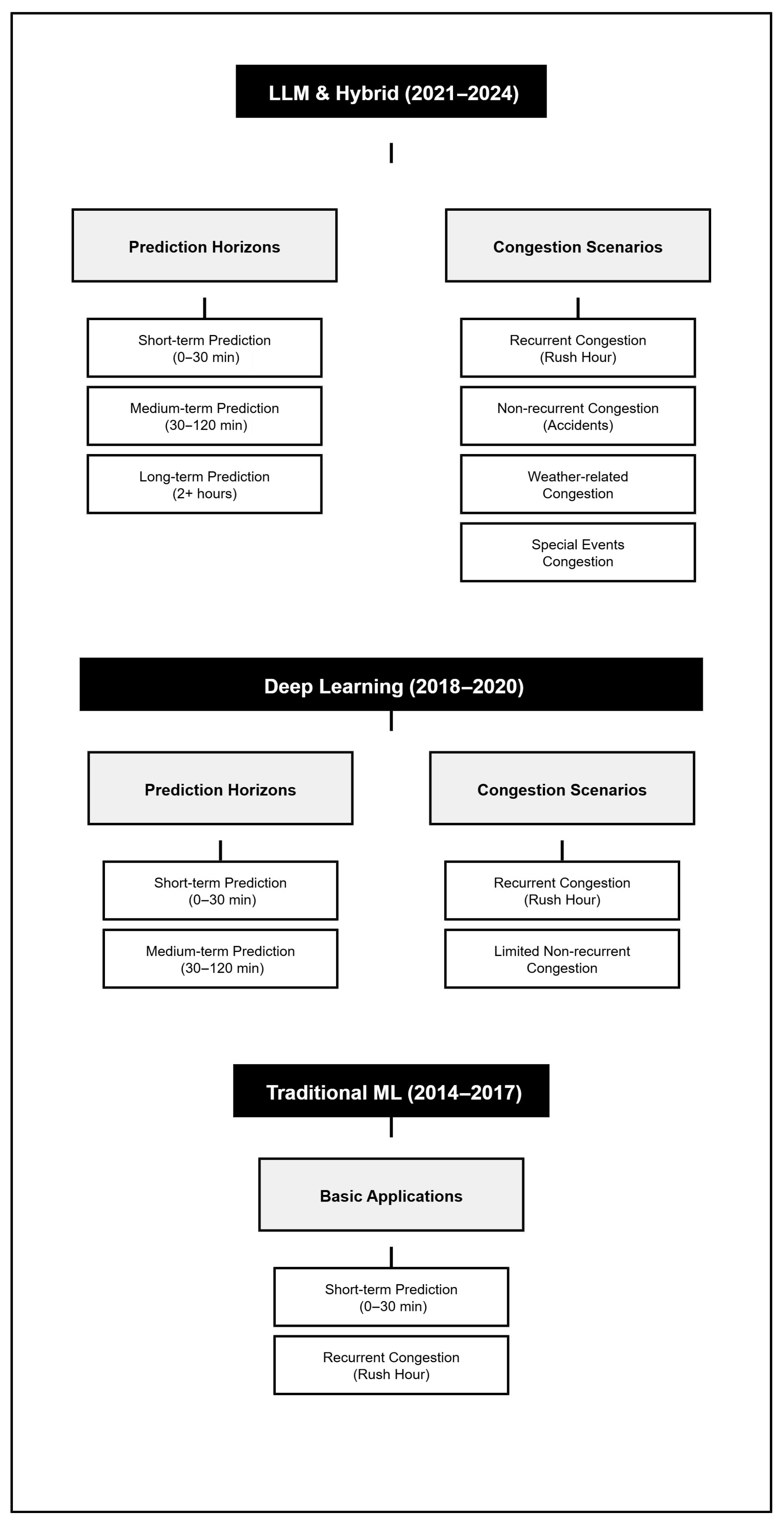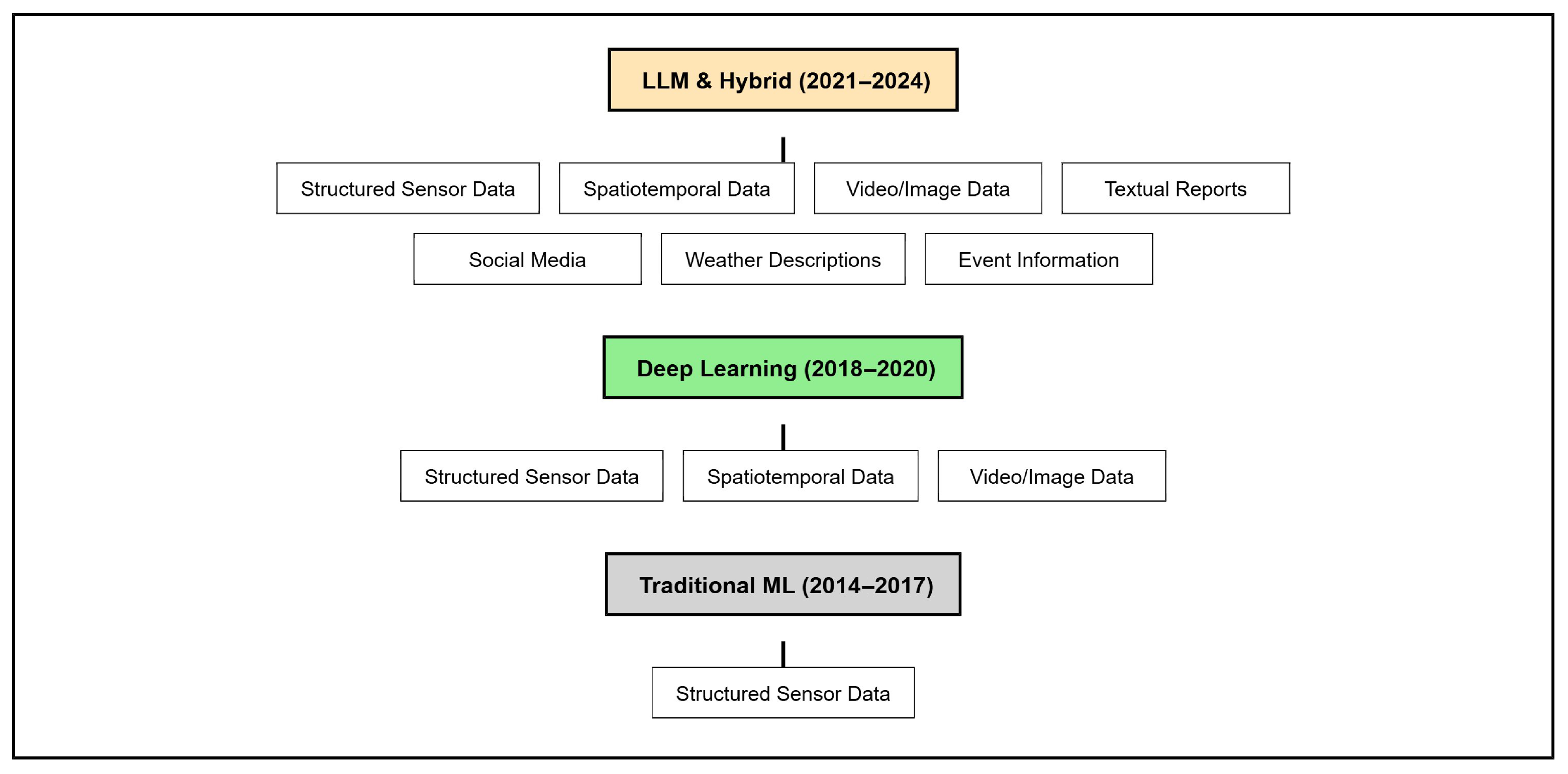 42] but in this study, we projected this procedure onto traffic congestion prediction by focusing on the evolution from machine learning-based techniques to large language models.