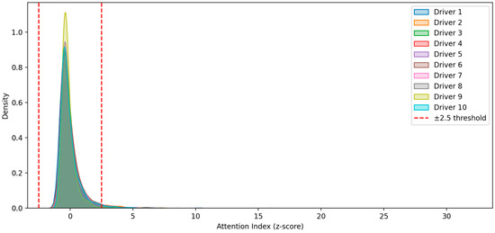 For each incoming fixation, the deviation from the driver’s baseline is quantified using a standardised z-score, termed the Attention Index (AI) (4):