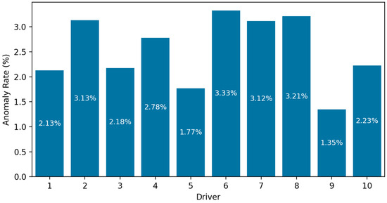 where determines the adaptation rate. The adaptive smoothing factor α, which governs exponential updating of each driver’s baseline fixation profile, was evaluated across α ∈ [0.60, 0.95]. For each α, we computed DSGP anomaly rates and bootstrapped 95% confidence intervals to assess stability and responsiveness. Very low α values (<0.70) caused excessive reactivity and unstable baselines, while very high values (>0.90) hindered adaptation to gradual behavioural drift, Appendix B. The most favourable balance between stability and adaptability was observed at α = 0.85, which provided consistent anomaly rate behaviour and stable baseline convergence. This value was therefore adopted in the final implementation of the model.