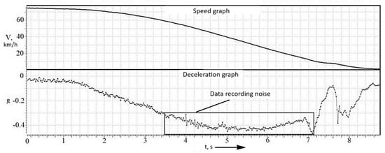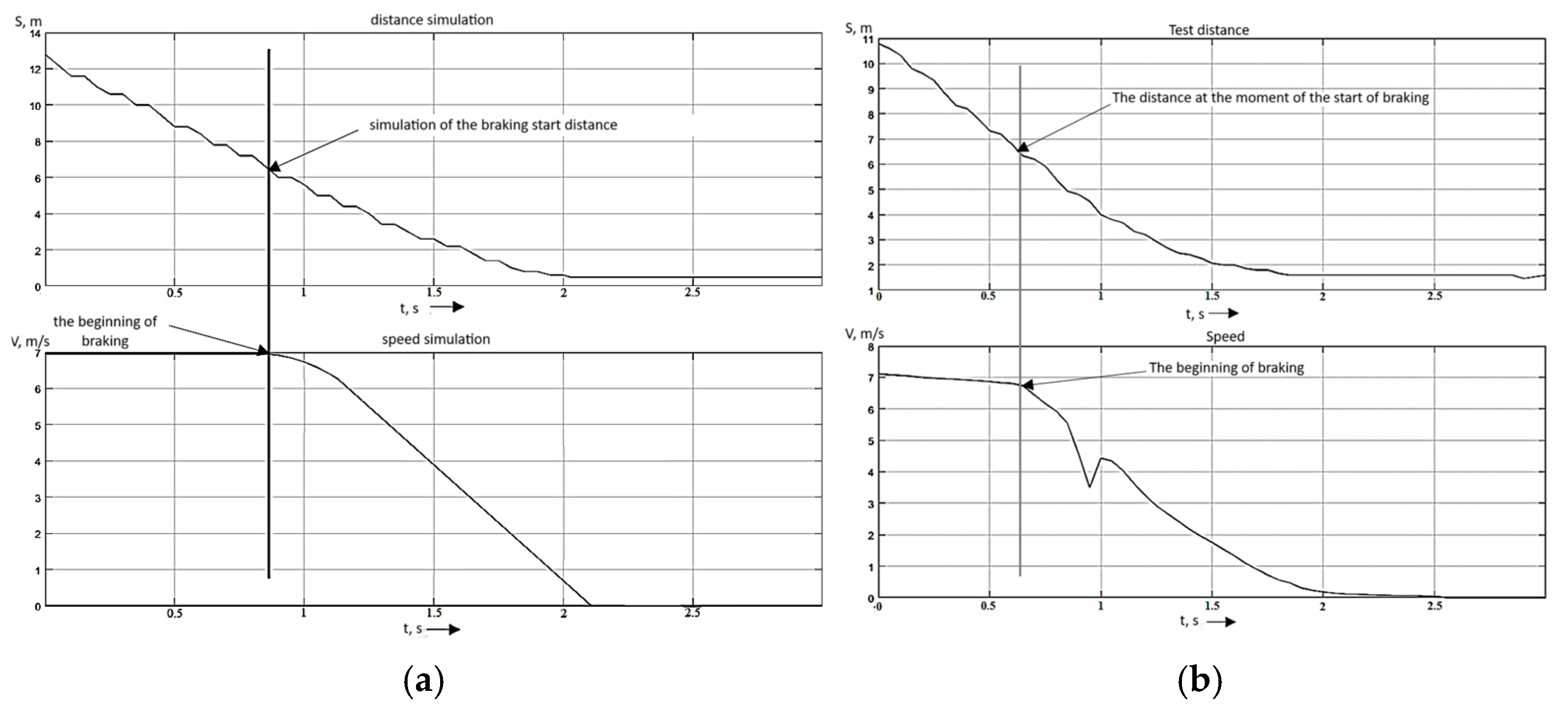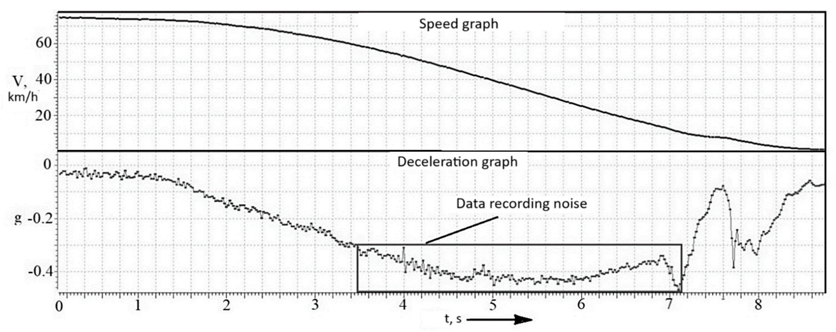 While significant research efforts have been dedicated to modeling and analyzing braking dynamics in other transport domains, such as railway systems [6,7], the operational environment for automotive AEB presents distinct challenges. Studies in railway engineering often benefit from more controlled track conditions and longer braking distances, allowing for highly detailed longitudinal-vertical coupled dynamics models [6] and systematic investigations of brake system components [7]. In contrast, automotive AEB systems must operate in highly dynamic and unpredictable traffic environments, where factors like rapidly changing road adhesion, driver behavior, and the need for split-second decision-making are paramount. Consequently, while sophisticated models exist, their experimental validation under a wide range of real-world driving scenarios remains a critical and less-explored area. This study bridges this gap by focusing not on the development of a new theoretical model, but on the comprehensive experimental evaluation of an existing AEB system’s robustness and accuracy, comparing calculated parameters with empirical data across diverse road surfaces.