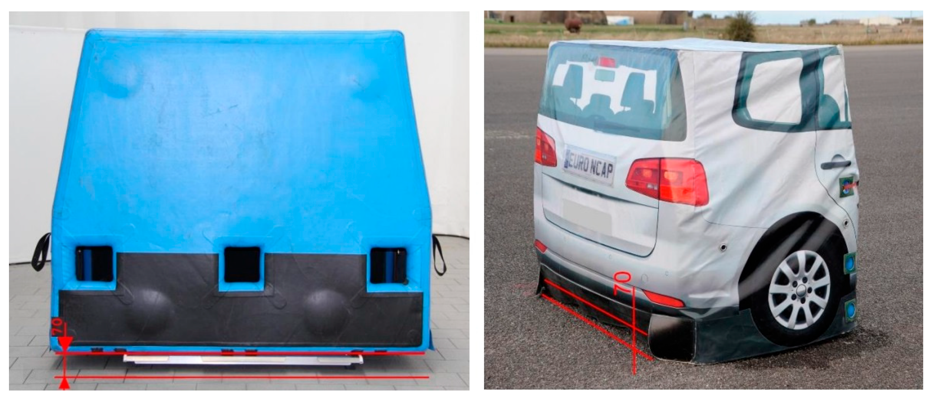 When testing scenarios involve high speeds, a different type of target is used. In this case, the target vehicle is a kind of inflatable trailer towed by an auxiliary vehicle. The type of this target is shown in Figure 2.