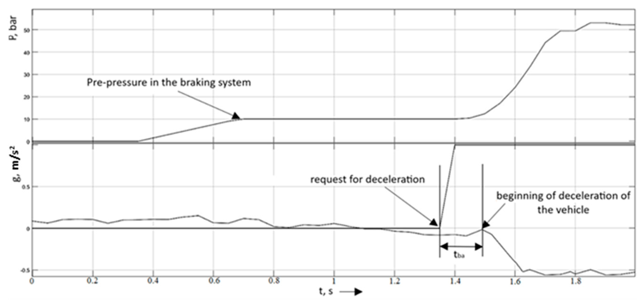 t b a Brake actuator operation timeExperimental measurements