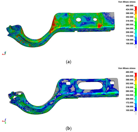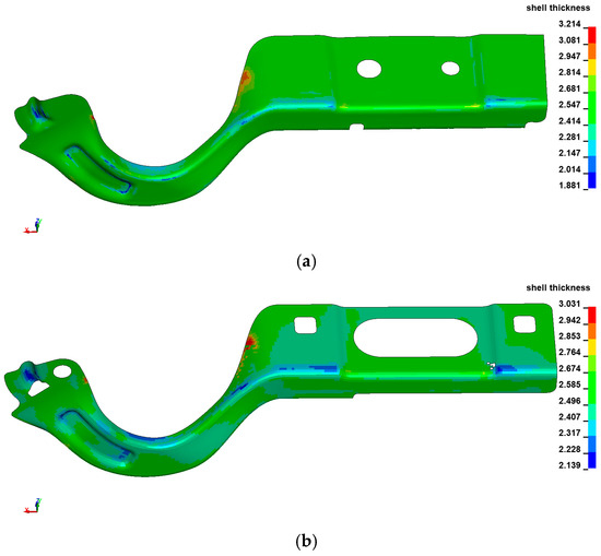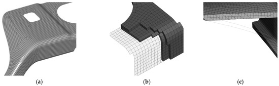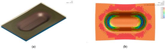 In most cases, the evaluation of the assembly’s structural performance is based on the nominal geometric definitions of the components. Thus, there are no changes in the material thickness or residual stress due to the manufacturing process that affect performance. Furthermore, performing complex analyses during design iterations is time-consuming and not justified during the design phase. A complete chain of design–manufacture–testing processes provides an opportunity to investigate the methods used during the design activity. Figure 10 gives a global perspective of simulation models developed for the forming process.