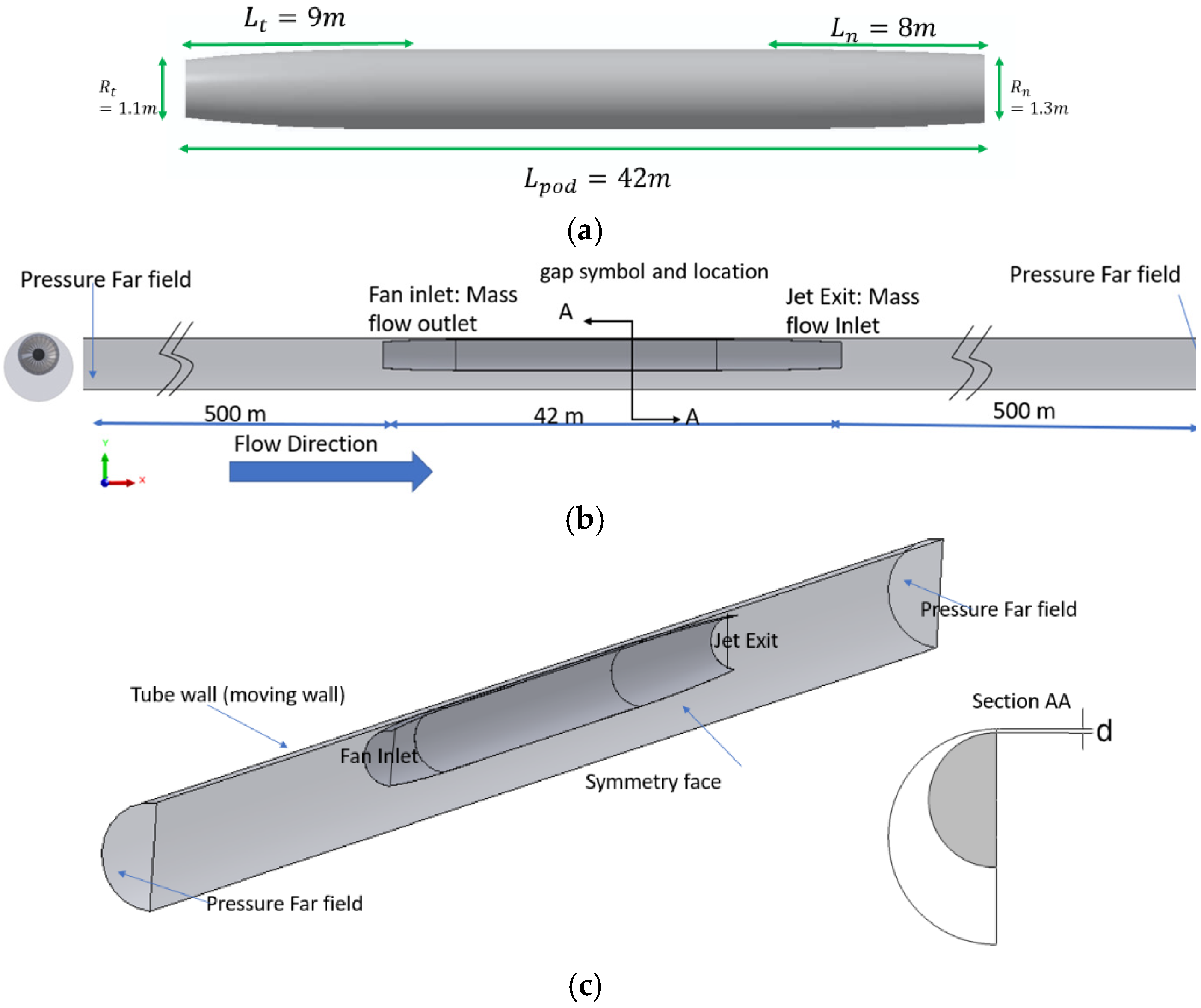 - Abdulla, M.M.; Alzhrani, S.; Juhany, K.A. Aerodynamics Analysis of Vehicle Moving in a Tube. In Proceedings of the HiSST: 2nd International Conference on High-Speed Vehicle Science Technology, Bruges, Belgium, 11–15 September 2022. [Google Scholar]