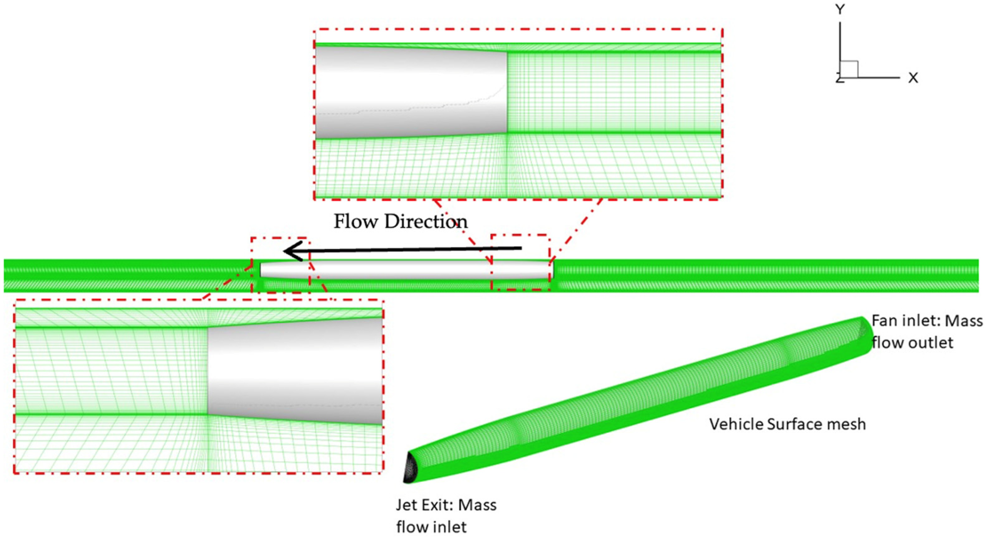 - Kang, H.; Jin, Y.; Kwon, H.; Kim, K. A Study on the Aerodynamic Drag of Transonic Vehicle in Evacuated Tube Using Computational Fluid Dynamics. Int. J. Aeronaut. Space Sci. 2017, 18, 614–622. [Google Scholar] [CrossRef]