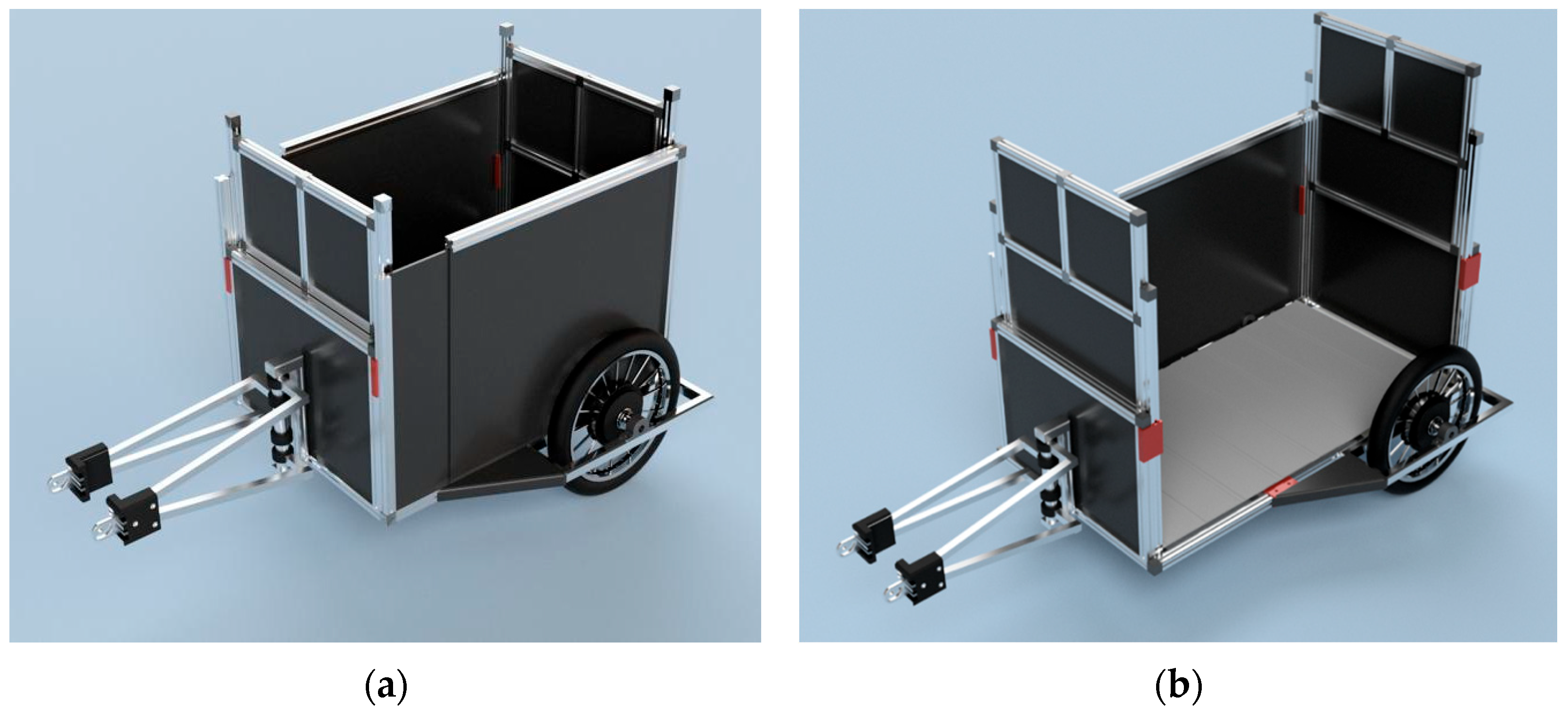 - Wike. Aluminum Landscaping & Utility Cargo Bike Trailer. Available online: https://wikeinc.com/en-ca/products/cargo-landscaping-trailer (accessed on 16 November 2025).