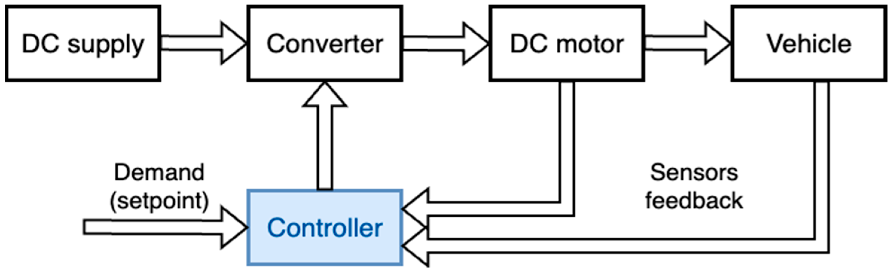 - A static converter that regulates and optimizes the power flow between the battery, motor, and controller, ensuring efficient energy distribution.