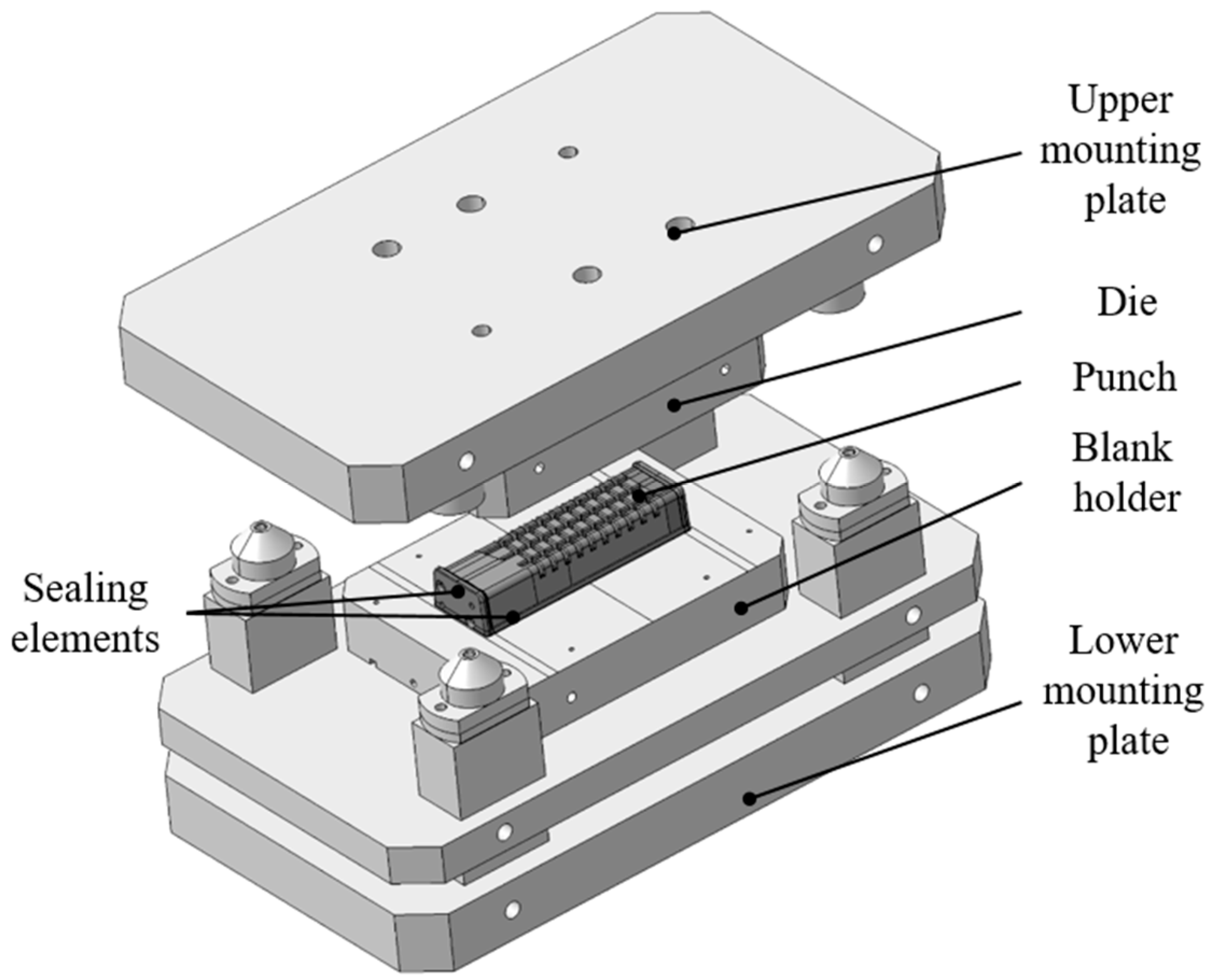 2.3. Hydraulic Press and Forming Tool Concept