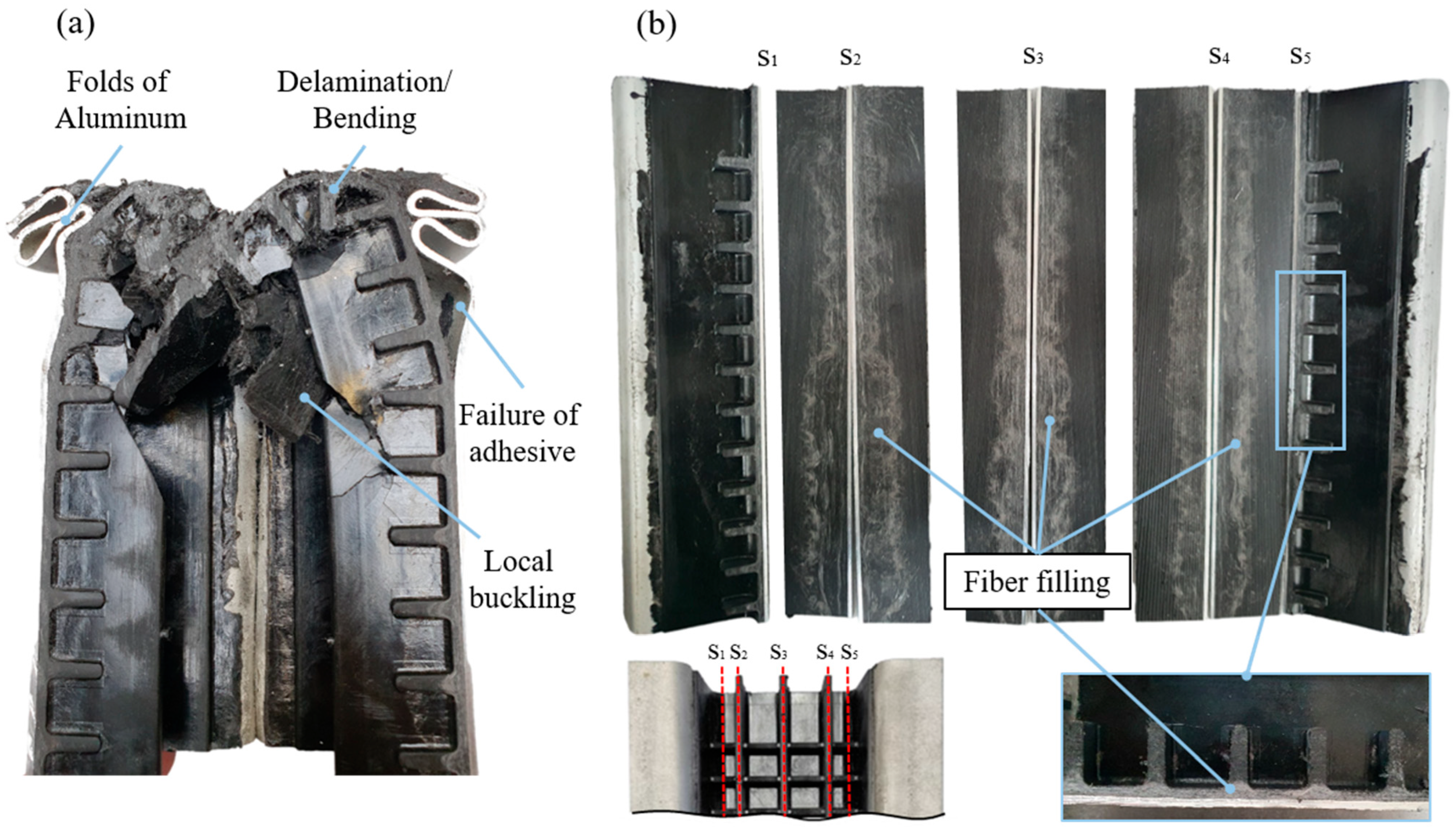 - Lau, S.T.W.; Said, M.R.; Yaakob, M.Y. On the effect of geometrical designs and failure modes in composite axial crushing: A literature review. Compos. Struct. 2012, 94, 803–812. [Google Scholar] [CrossRef]