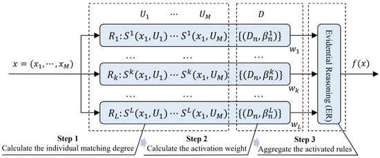 Following the construction of the EBRB, the rule inference step is conducted [64], and the basic process is shown in Figure 9.