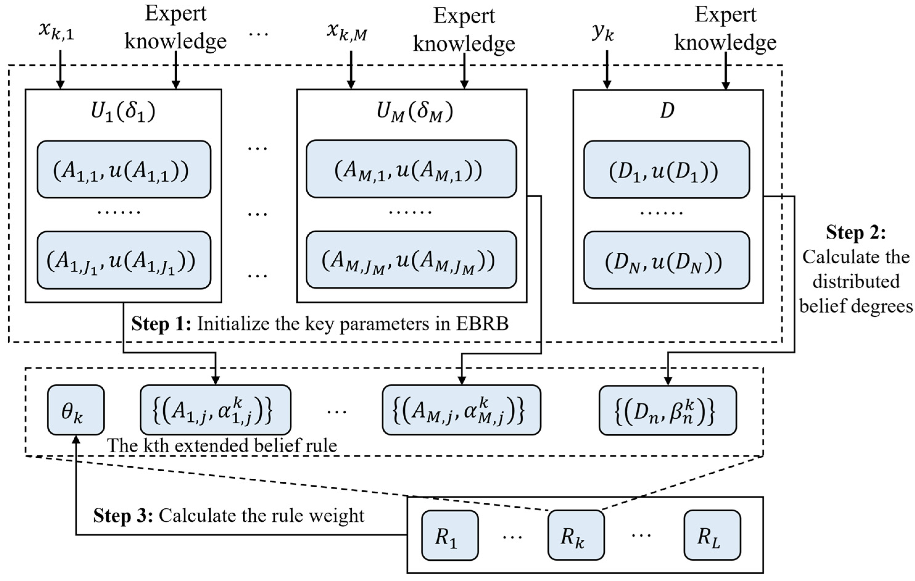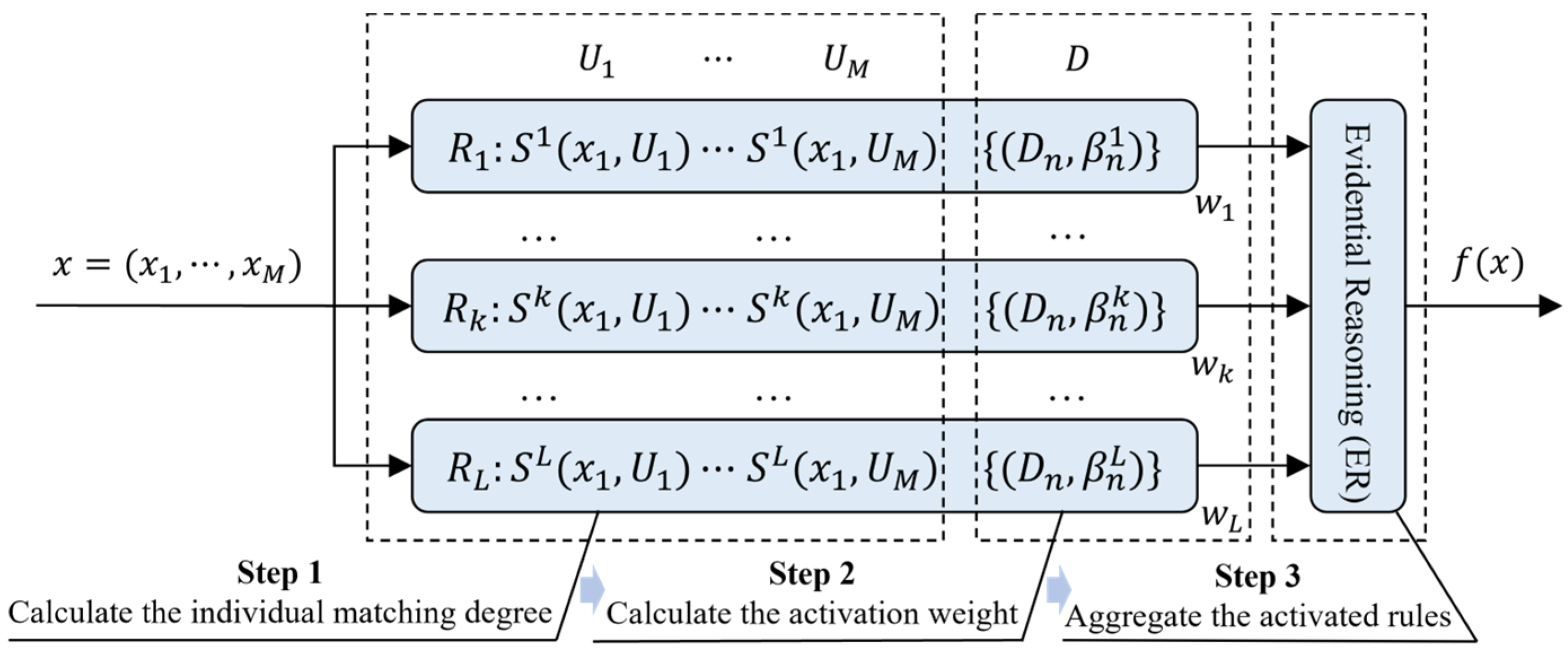 - Hou, B.; Xue, M.; Liu, J.; Wu, Z. Multi-output extended belief rule-base system and its parameter learning schemes. Appl. Soft Comput. 2025, 170, 112687. [Google Scholar] [CrossRef]