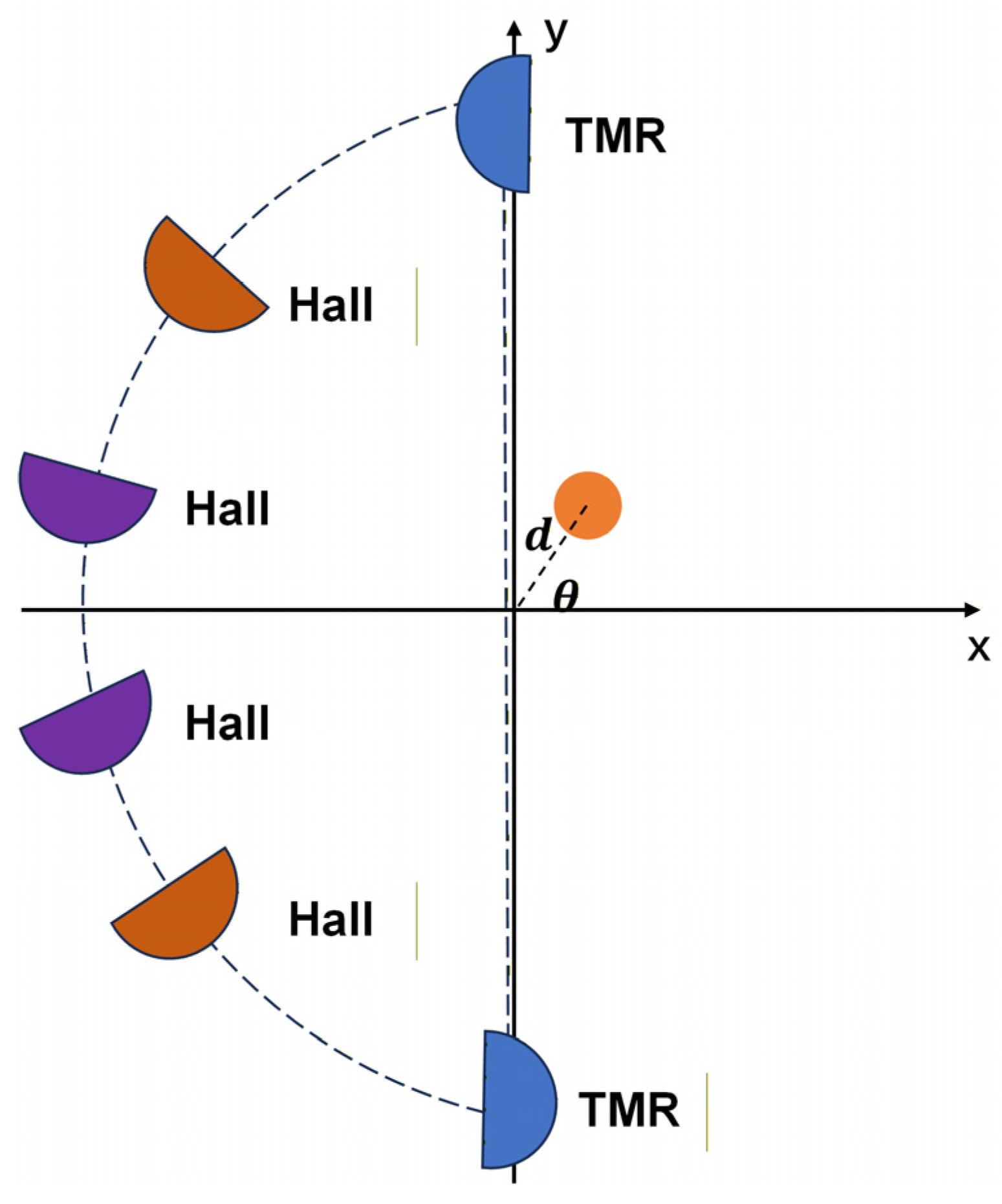 Section 2 presents the operating principles of the Hall and TMR sensors and details the structural design and hardware architecture of the proposed semi-circular sensing array.