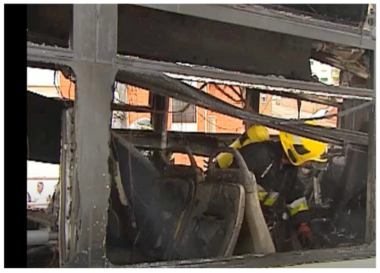 Coimbra Fire Brigade, whose station is less than 400 metres from the scene of the accident—on the opposite road—intervened a few minutes after the fire started but could do nothing to save the vehicle, which was rendered unusable (Figure 2).