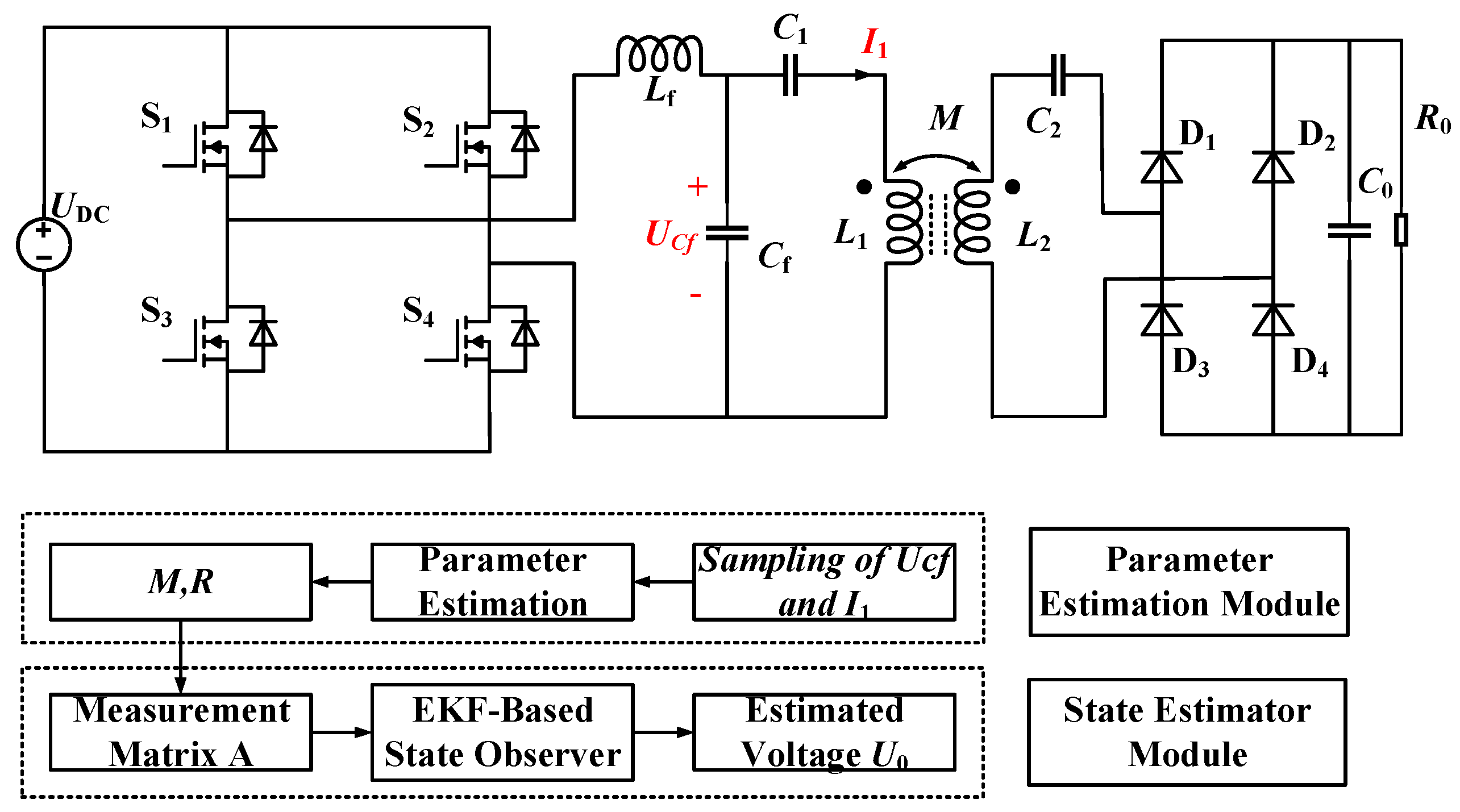 C2 and the load terminal voltages Uout. These estimated values will be used as key inputs to the closed-loop control strategy, and the precise control of the system power transfer characteristics will be finally realized by dynamically adjusting the operation frequency and modulation strategy of the primary-side resonant converter.