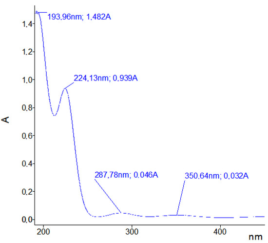 UV spectra were obtained using a Lambda-35 spectrophotometer (Perkin Elmer Inc., Waltham, MA, USA). Spectral range: 190–1100 nm, wavelength λ ± 0.5 nm. Optical density ± 0.02 units.