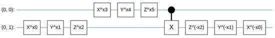 The pooling unit we used for the present study, which pools two qubits into one qubit, is shown in the Figure 3. It consists of local rotation gates on each qubit, a controlled X-gate, and the inverse rotation on the controlled bit. Thus, in total, there are six parameters in each pooling unit that pool two qubits into one qubit.