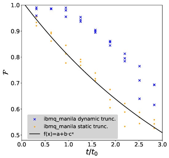 - If the fidelity falls below a certain threshold at some point in time, the selected truncation is no longer appropriate. Then, increase the qubit number by one , save the qubit number along with the time point, and repeat steps 3, 4, and 5 until the desired fidelity is reached.