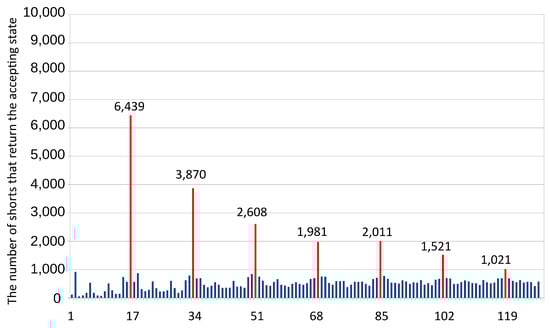 7.3. Search in a Dictionary Based on the Quantum Hashing Technique