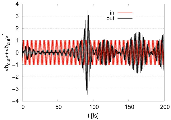Here, we adopt an input–output formulation, introduced in [39]. Solving the time evolution Equations (11) and (12), we find the solution of as