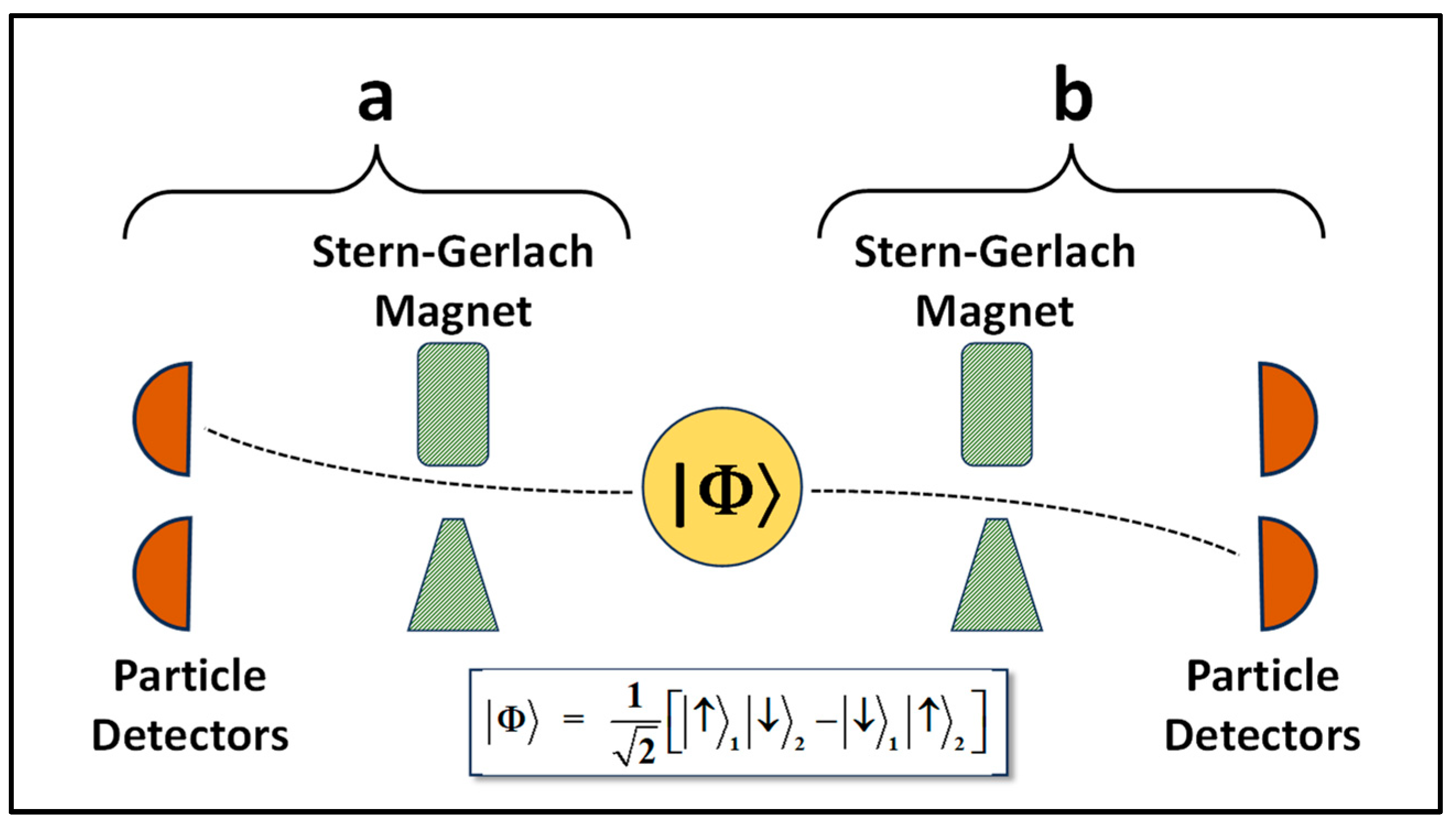 - Einstein, A.; Podolsky, B.; Rosen, N. Can quantum-mechanical description of physical reality be considered complete? Phys. Rev. 1935, 47, 777–780. [Google Scholar] [CrossRef]