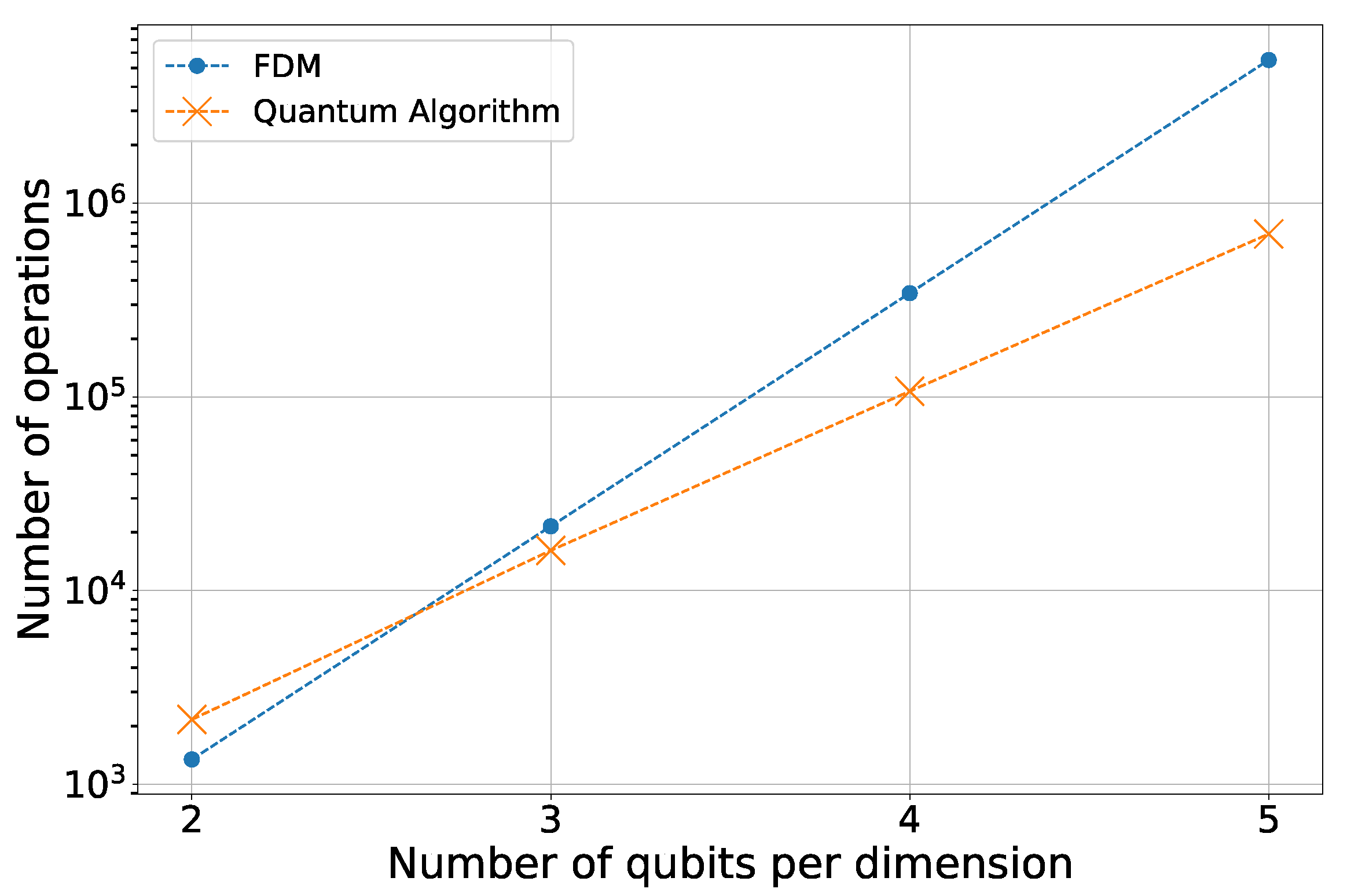 3.3. Scaling of Multidimensional Wave Equation Quantum Algorithm