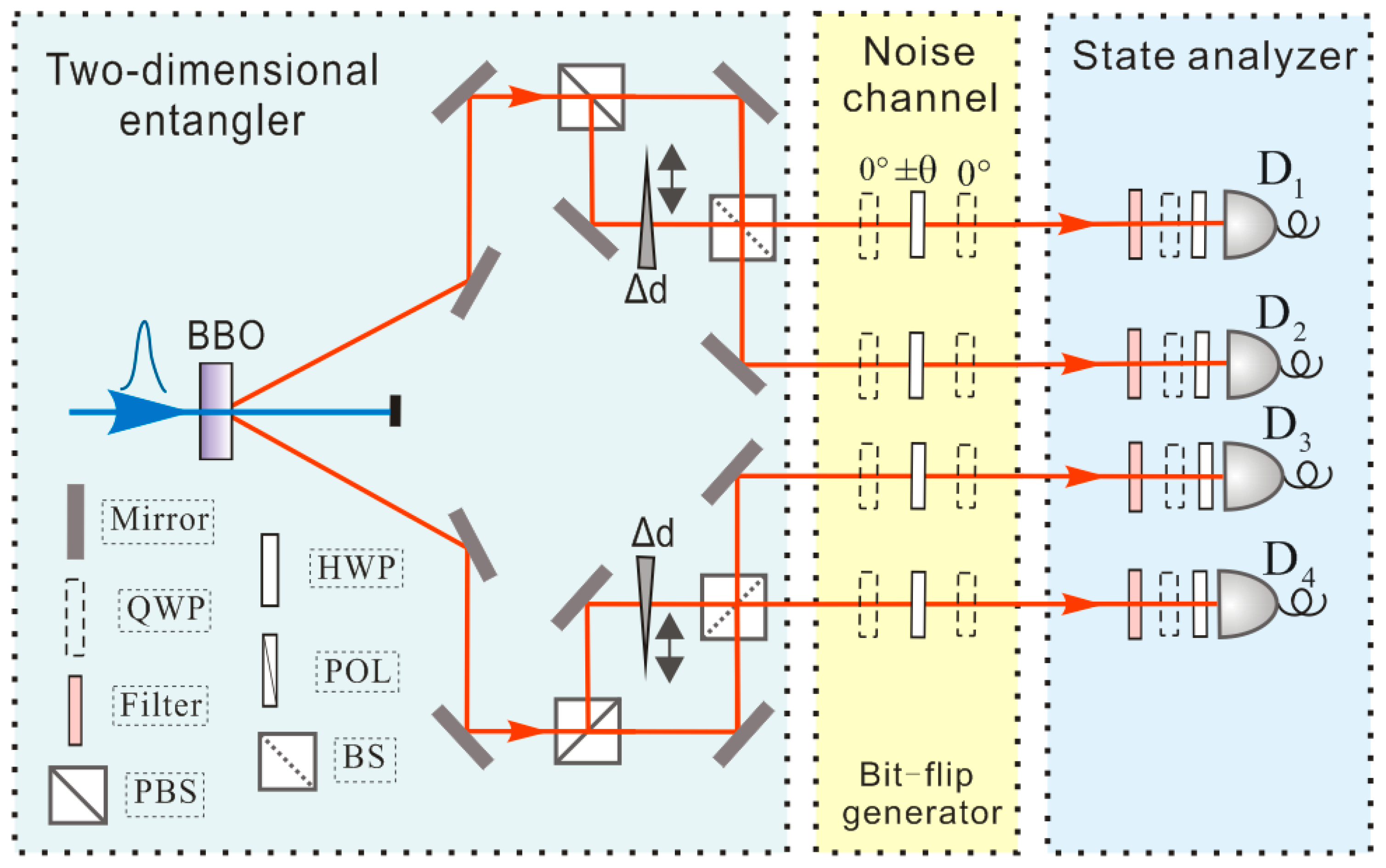 Zhao J, Qin H, Cao L, Yang Y, Liu X, Zhang Q, Lu H, Driscoll KA, Wang M. Experimental Investigation on Quantum Channel Noise Simulation and Information Security Threshold Based on Two-Photon Four-Qubit Hyper-Entanglement Systems. Quantum Reports. 2025; 7(4):50. https://doi.org/10.3390/quantum7040050