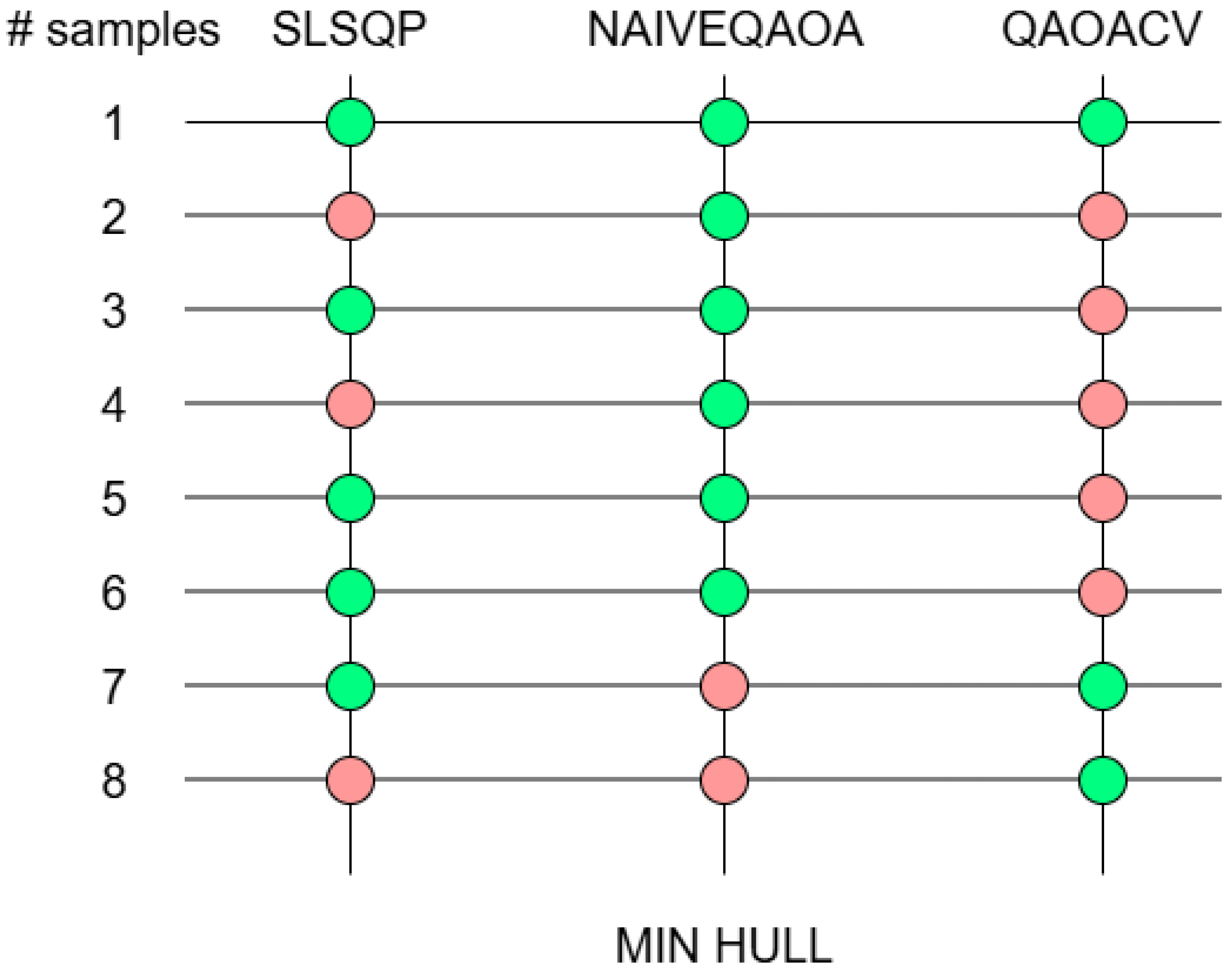 NCH + MH_NAIVEQAOA: NCH classifier with min hull subsampling. We used the naïve implementation of QAOA-CV with SLSQP as an optimizer, and the mixer operator was the X mixer.