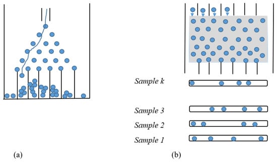 Fermions (such as electrons) and bosons (such as photons) are two types of basic particles in the universe. Boson sampling was performed by entering a collection of noninteracting bosons into a “Quantum Galton’s Board”, that is, the quantum version of Galton’s board, implemented via a linear optical network, and sampling the distribution of the output photons. In the classical version of the Galton’s board model (Figure 1), many small and identical spheres are released from their input sequentially, and after hitting the vertical pegs on the board, they will randomly fall to the left or right side of the peg. Lastly, all the spheres are placed in the slits at the bottom, and the distribution of the number of spheres in each slit is like a binomial distribution. So, sampling from a binomial distribution can be performed by the Galton board [,]. In the quantum version of Galton’s board (Quantum Boson Sampling Machine (QBSM)) (Figure 1) (1) bosons (photons) are used instead of balls; (2) many photons can be released together, each from various starting locations, instead of a particular location, because of the increases in the number of input places (modes), and the corresponding optical devices (beamsplitters and phase shifters) are used instead of pegs and placed randomly instead of using a regular lattice arrangement of pegs. Thus, n indistinguishable photons pass through an optics network, and a photon’s direction changes as a result of quantum effects and the superposition of both left and right, probabilistically. In addition, the coherence between identical photons prevents photon passage through some paths while increasing the probability of passing through other routes. The QBSM is completely dissimilar from the classical Galton’s board because of the interference between identical photons. All these quantum properties make the photon distributions not follow a classical binomial distribution [,].