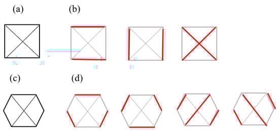 A perfect matching of a graph is a subgroup of the edges where each vertex in the graph is attached to a single unique other vertex by an edge, or no two edges share a vertex. Figure 6 shows two instances of perfect matchings in two graphs in which every vertex is matched up with another vertex [,,,].