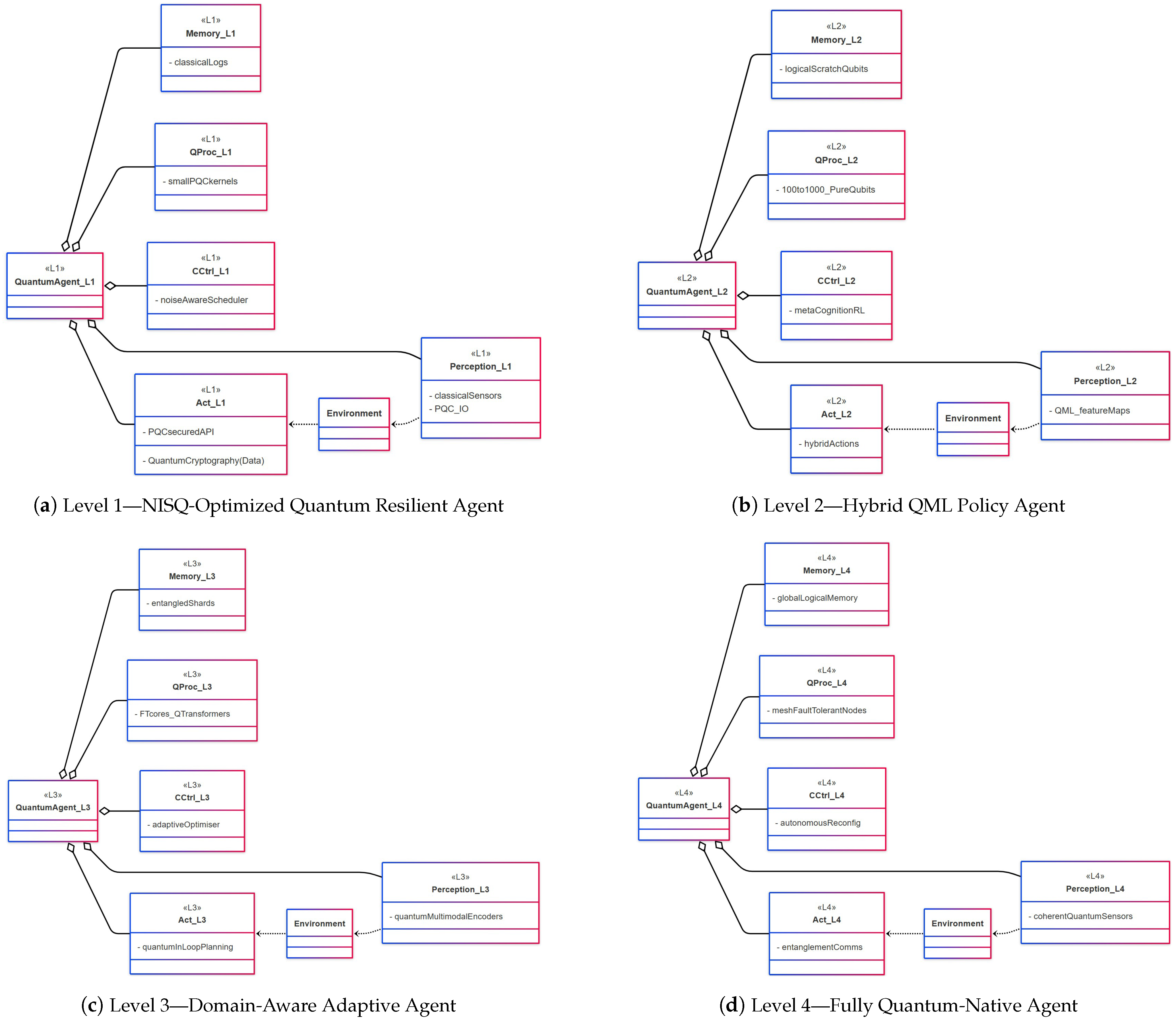 1] extended traditional intelligent agents by incorporating quantum processing capabilities, enabling functionalities such as quantum addressing and the execution of quantum instructions within a master–slave architecture. This pioneering work highlighted the potential of hybrid quantum–classical systems in agent design.